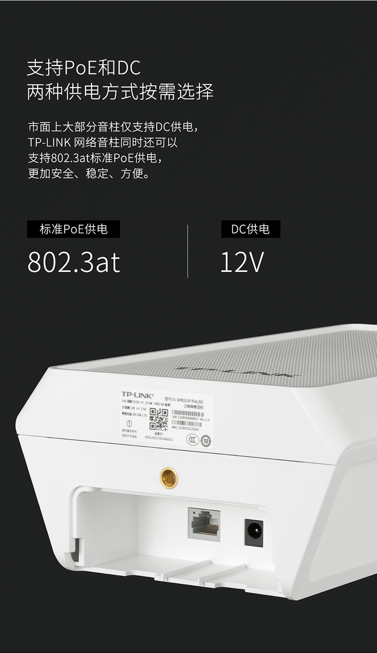 兼容DC和PoE两种供电方式,施工灵活方便
