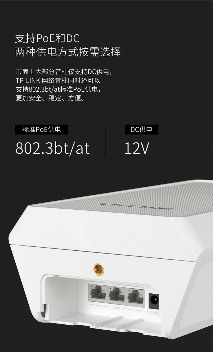 兼容DC和PoE两种供电方式,施工灵活方便