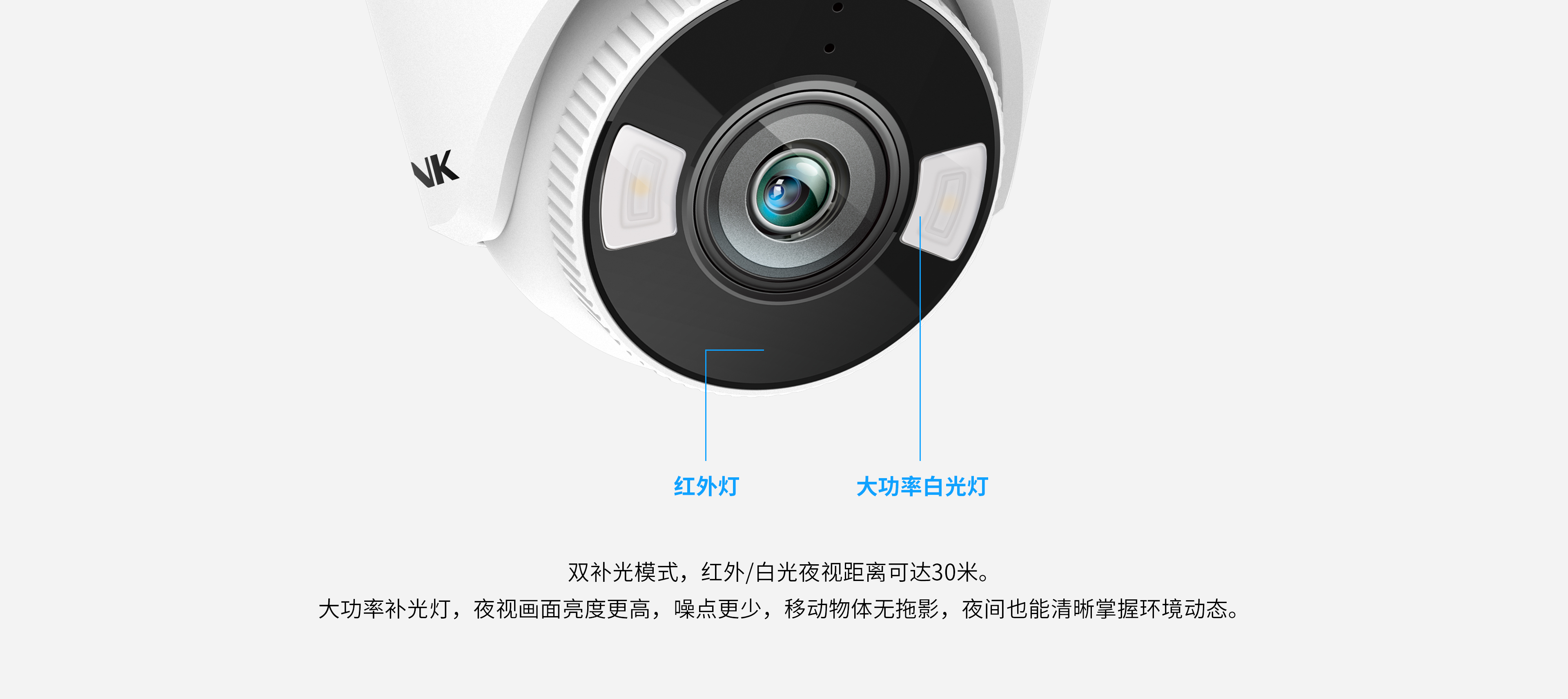 • 外置2颗暖光灯、2颗红外灯,支持全彩/红外/移动侦测全彩