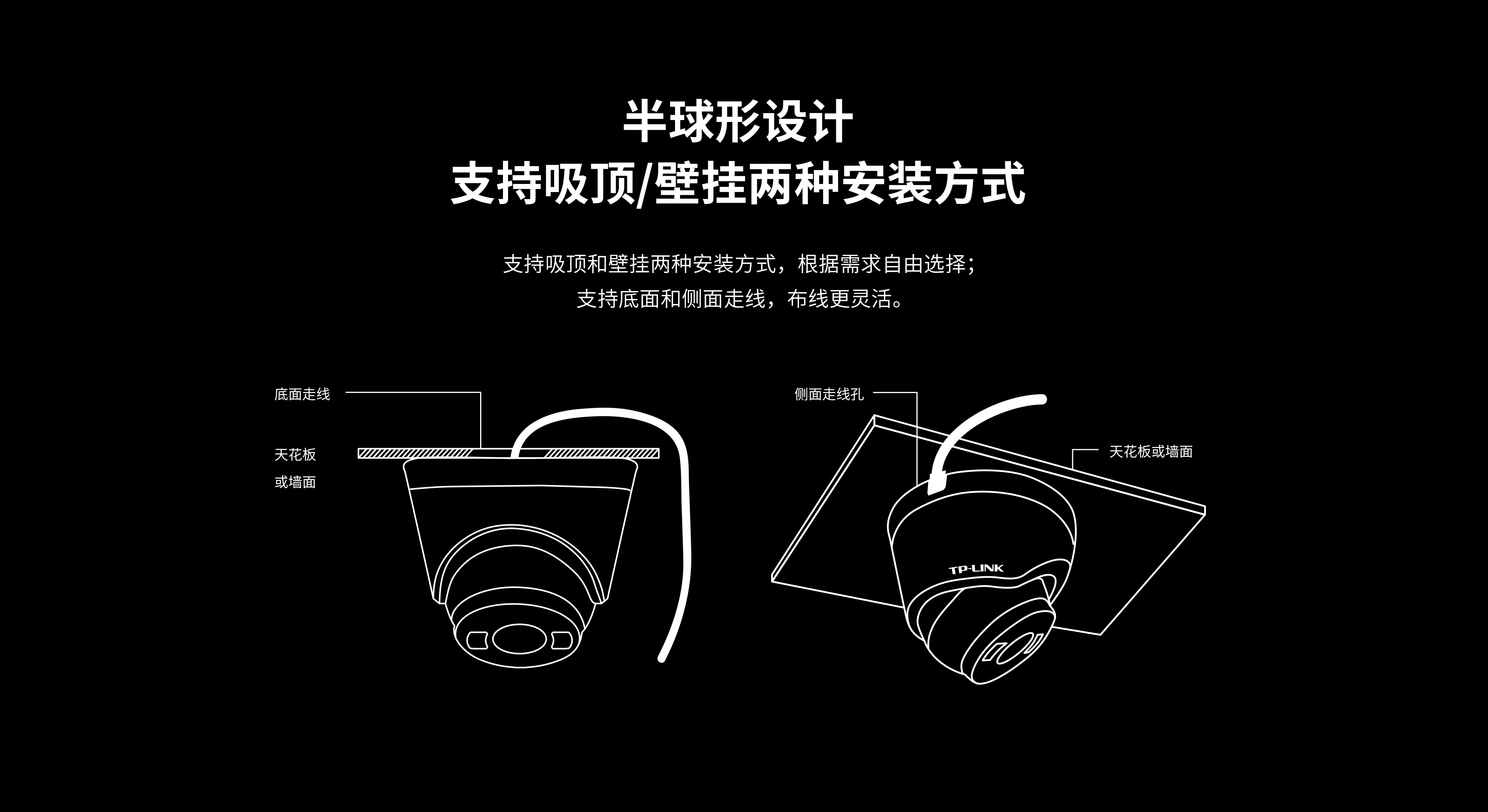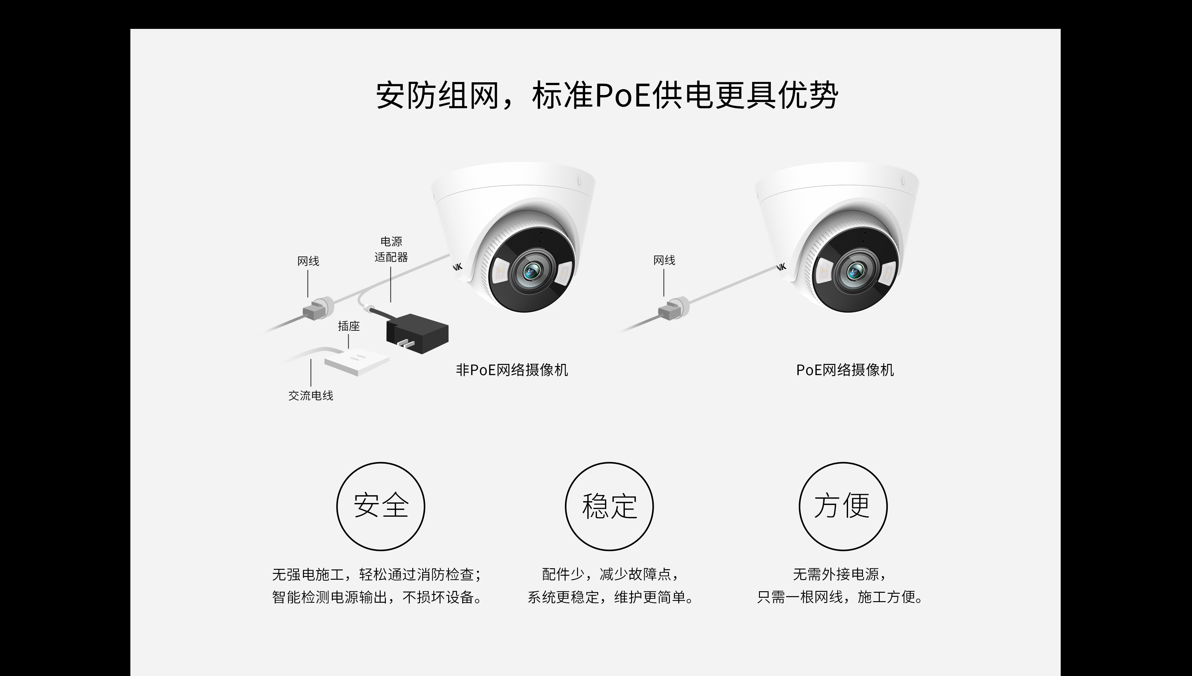 • 支持标准PoE+12V DC供电,稳定安全,方便施工