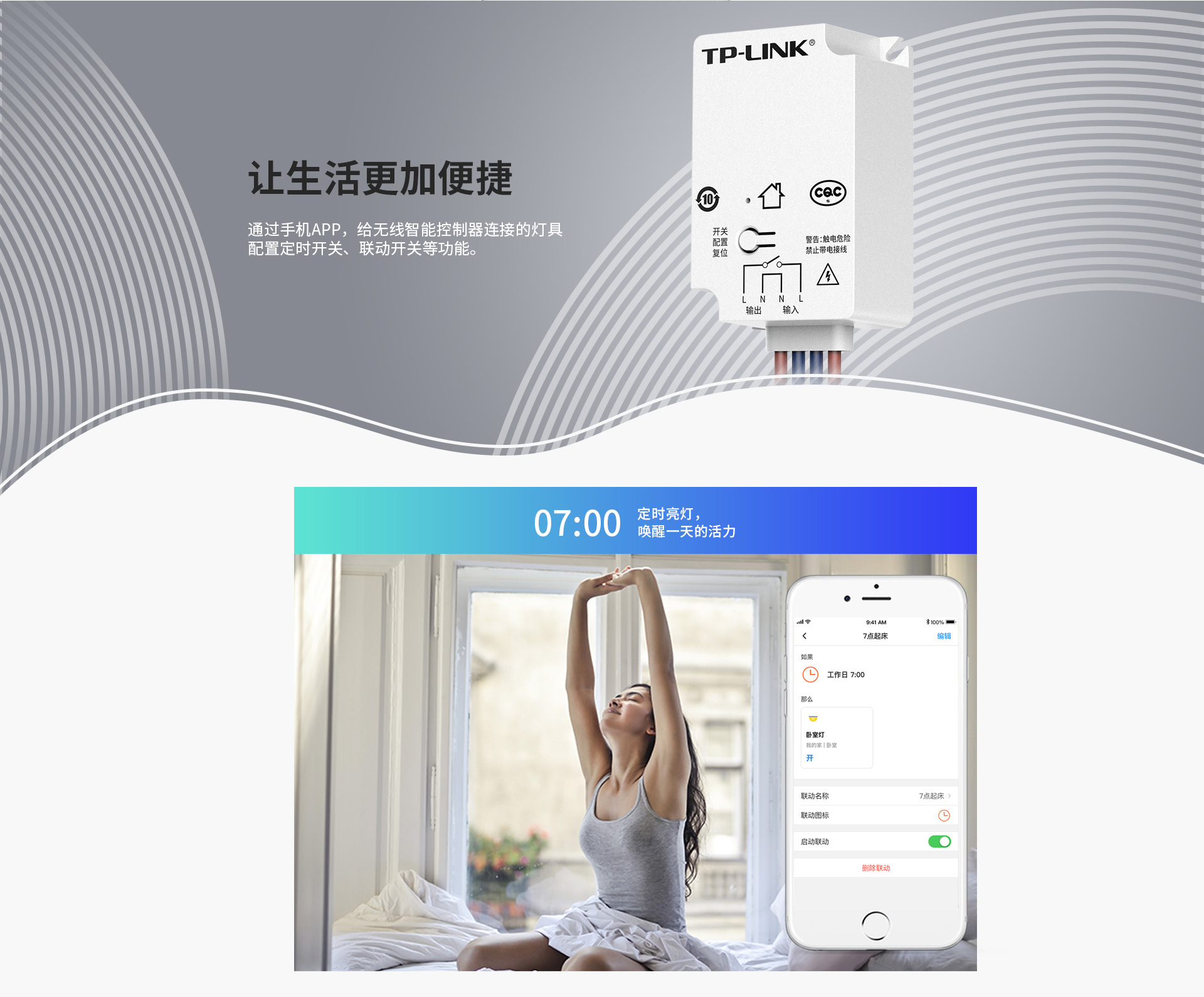 • 支持“TP-LINK 智能家居APP”远程控制管理