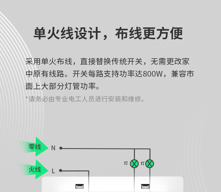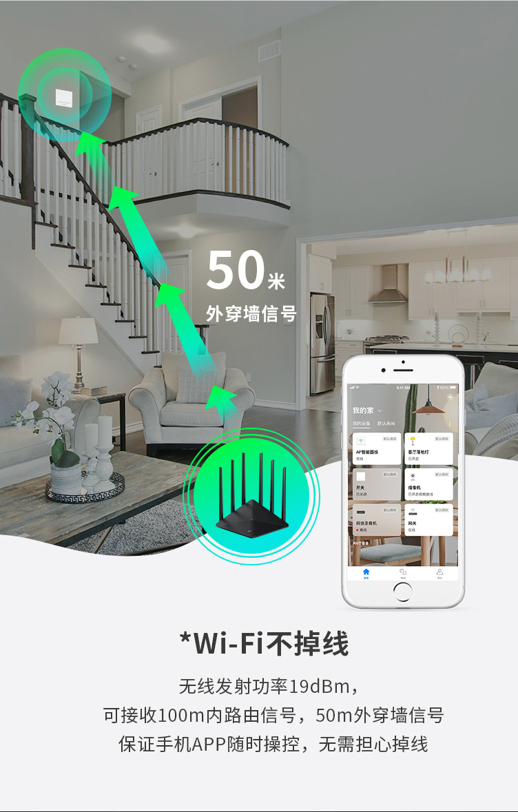• 支持灯具、风扇等电器负载,最高负载800W/路