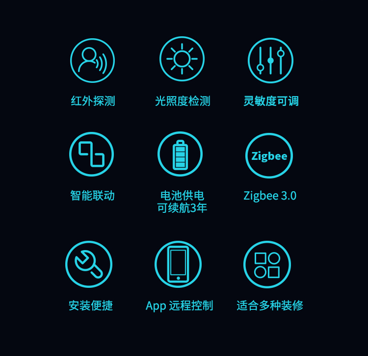 • 支持Zigbee低功耗无线协议,搭配我司Zigbee网关一键配网