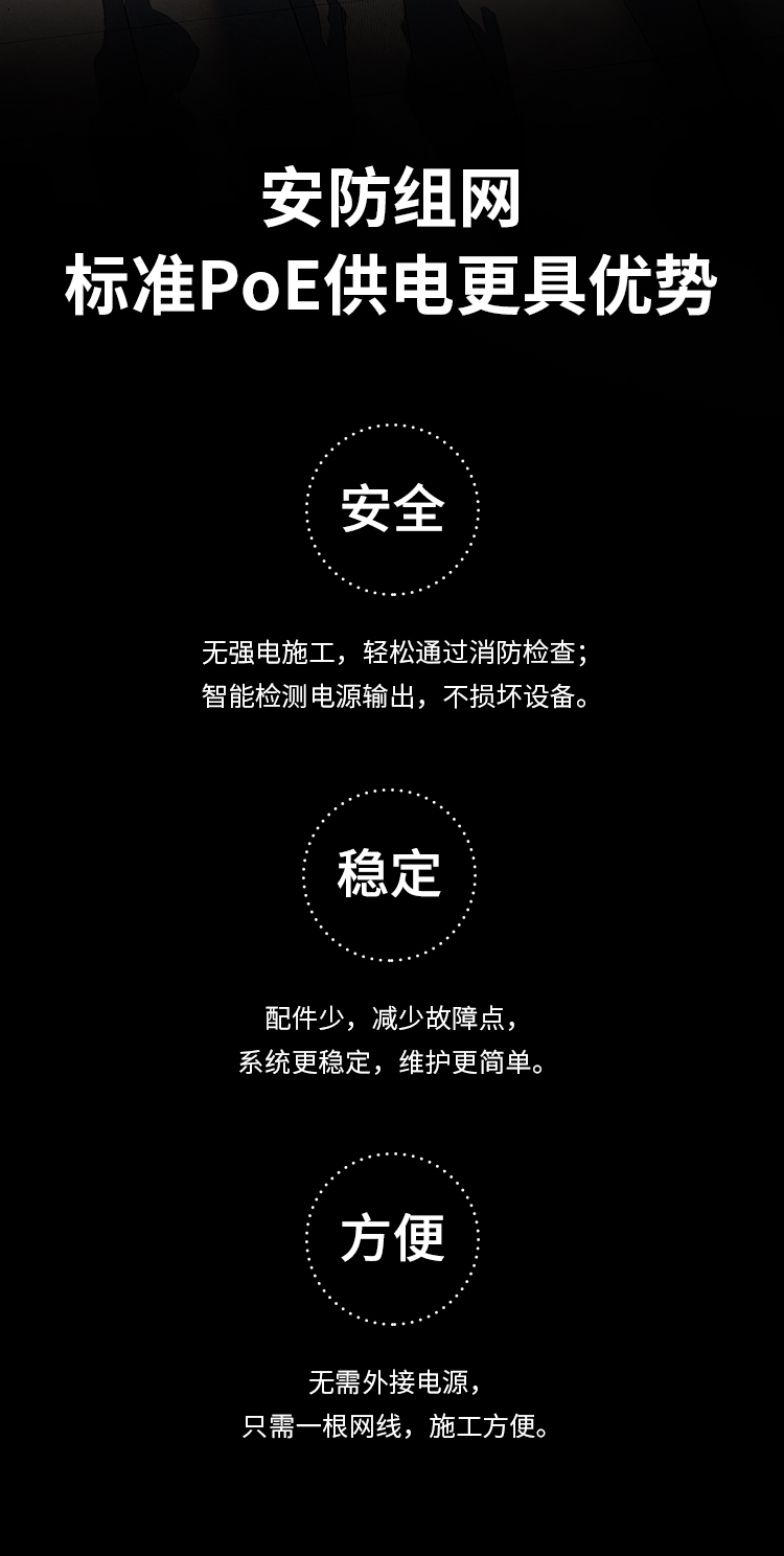 支持标准PoE+12V DC双供电,稳定安全,施工方便 (PoE机型)