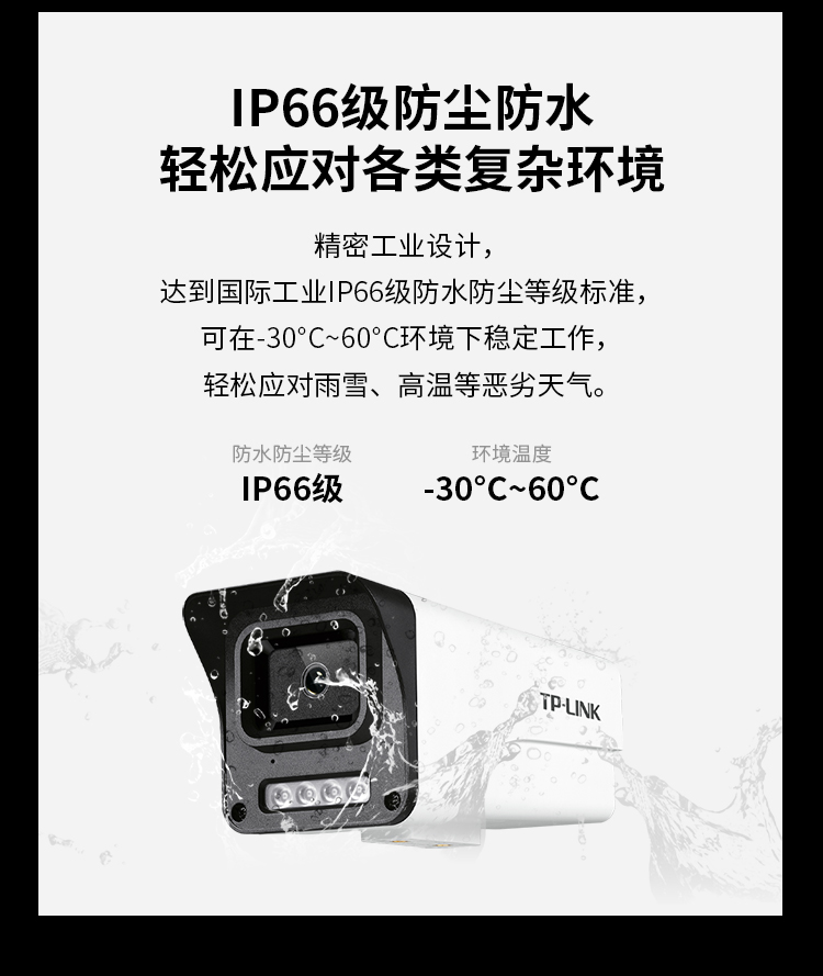 IP66级防尘防水,满足室内室外各种应用场景
