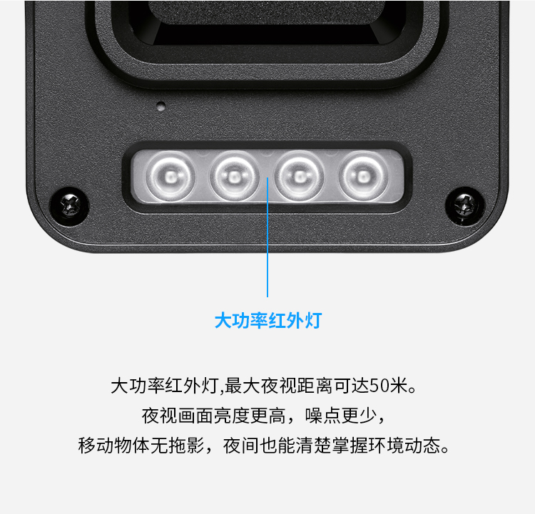4颗红外灯,支持红外人形防过曝功能 内置麦克风,支持5米拾音