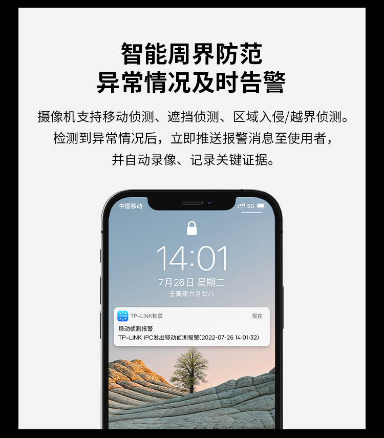 支持5项事件侦测:移动侦测、遮挡侦测、区域入侵侦测、越界侦测、异常侦测