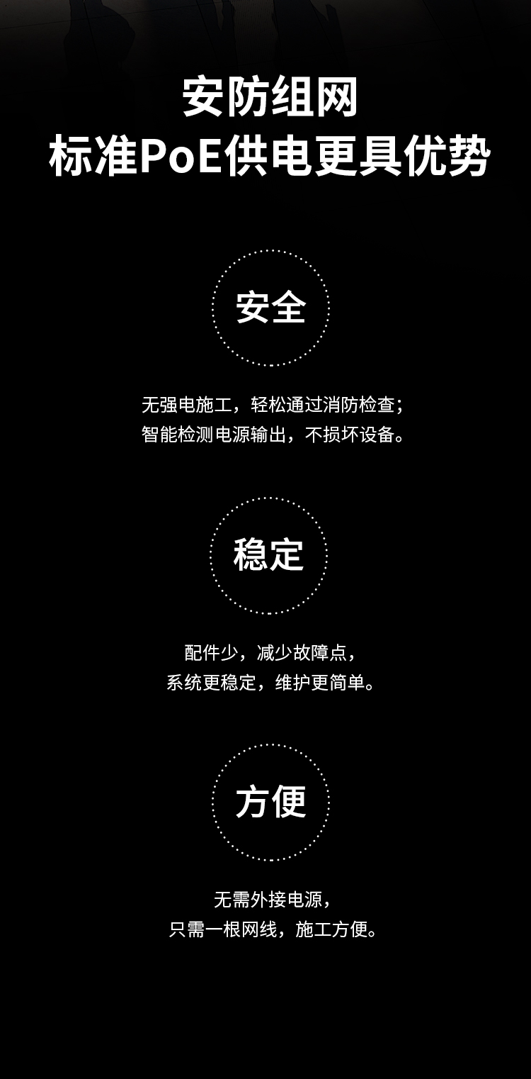 支持标准PoE+12V DC双供电,稳定安全,施工方便 (PoE机型)