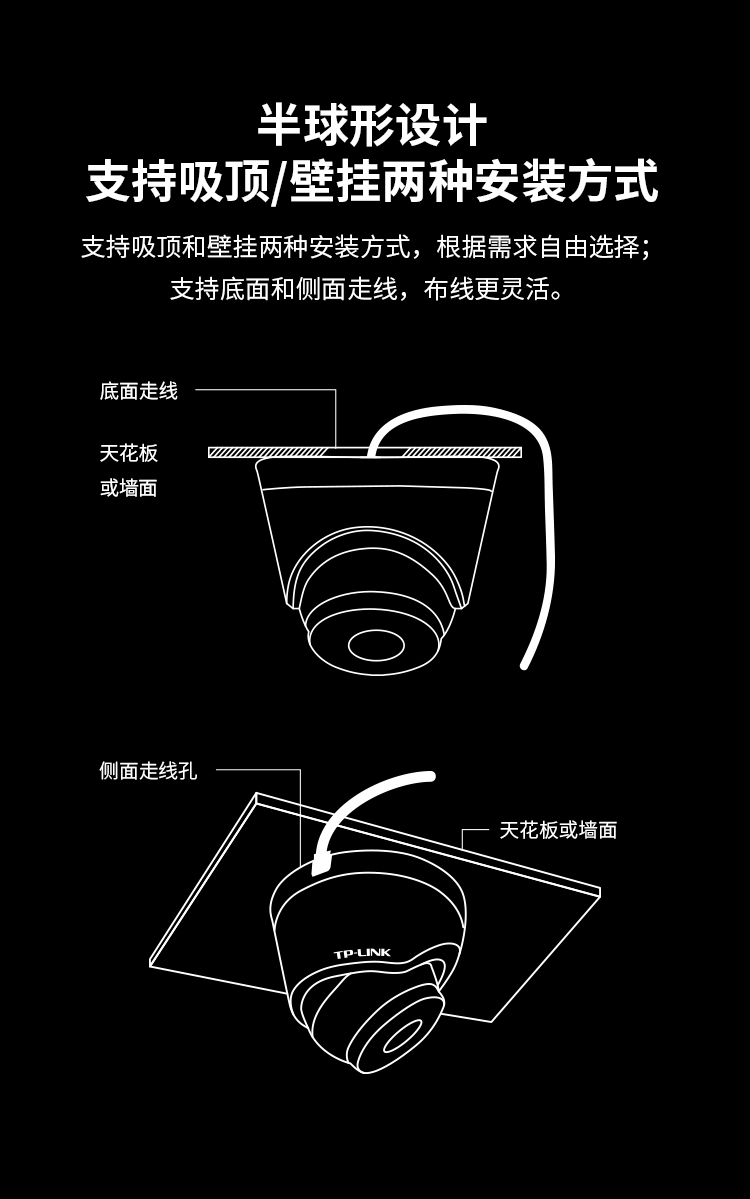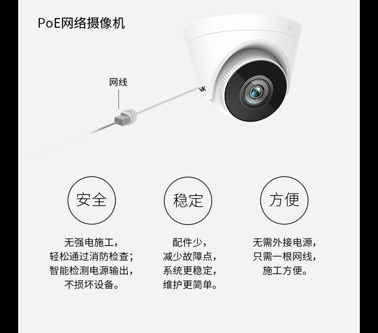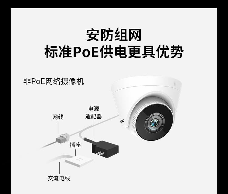 支持标准PoE+12V DC双供电,稳定安全,施工方便 (PoE机型)