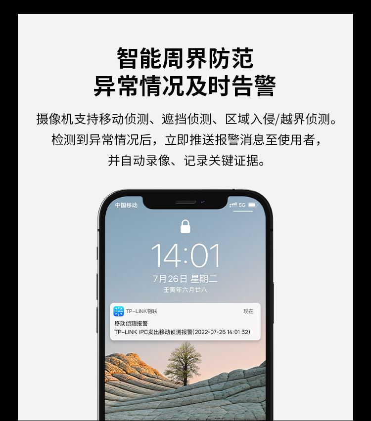 支持5项事件侦测:移动侦测、遮挡侦测、区域入侵侦测、越界侦测、异常侦测