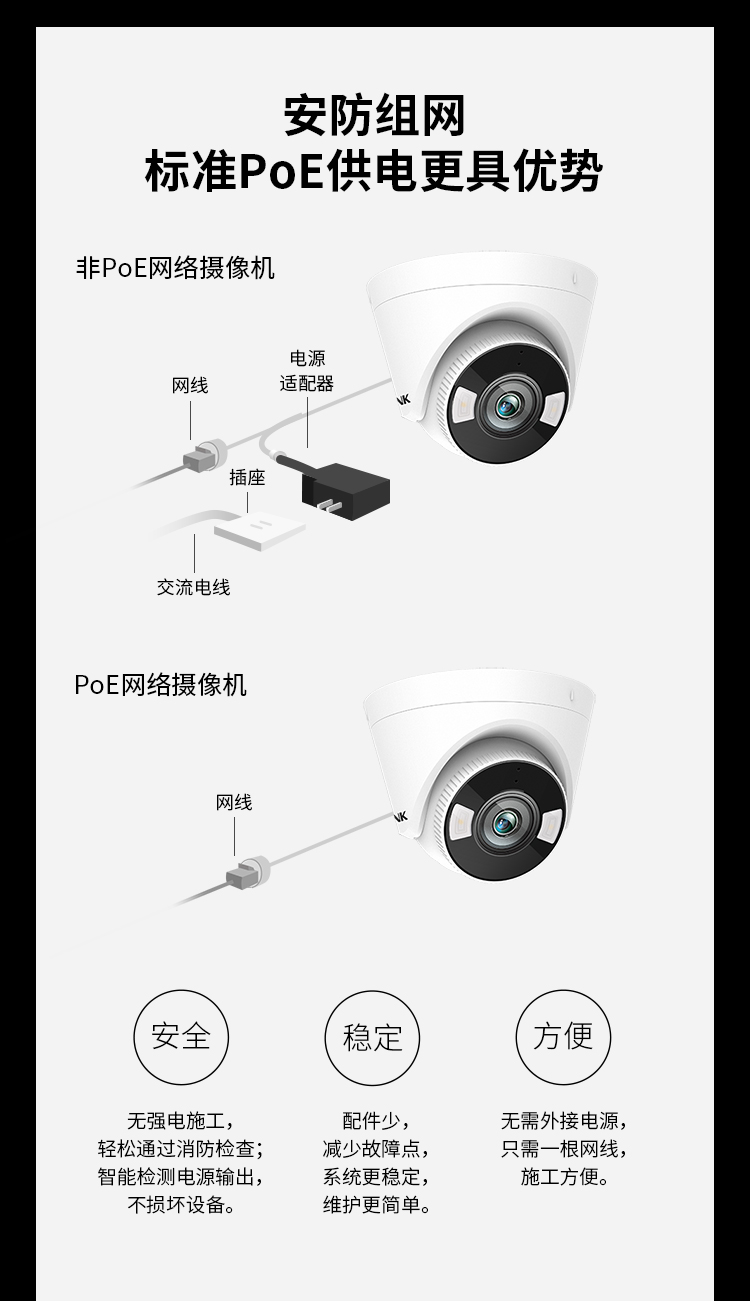 支持标准PoE+12V DC双供电,稳定安全,施工方便 (PoE机型)