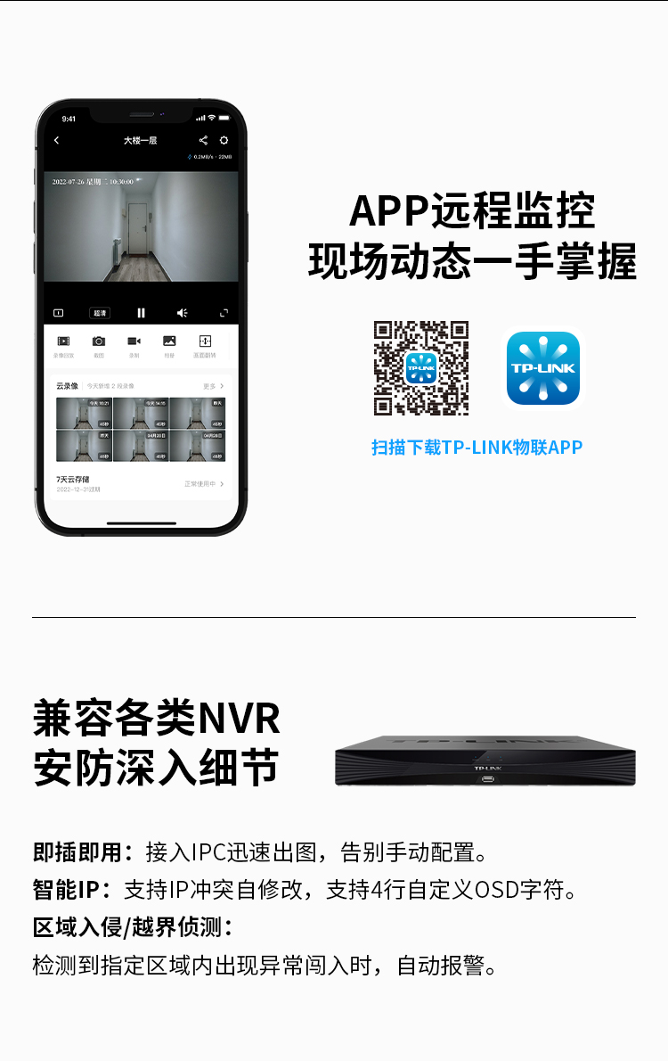 支持APP远程监控,扫码一键添加 支持跨网段添加,兼容各种品牌NVR