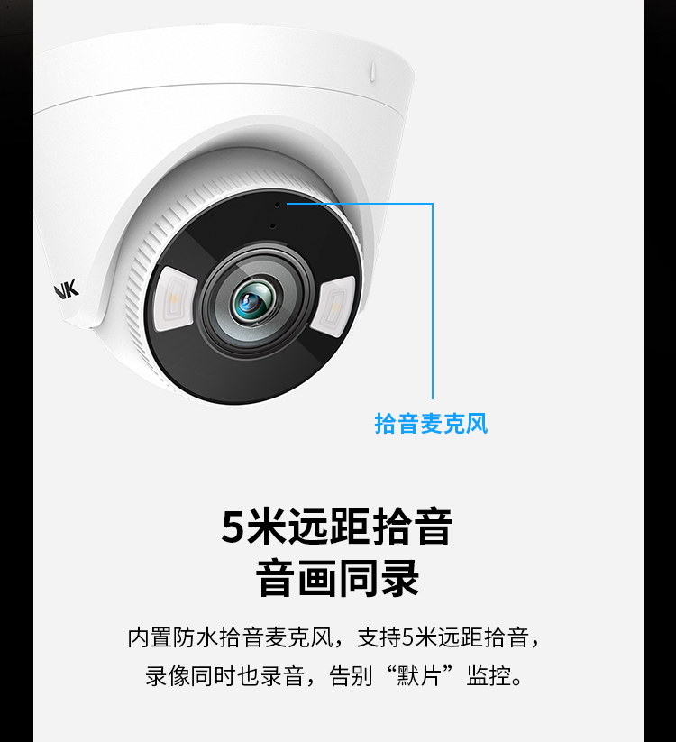 内置麦克风,支持5米拾音 支持5项事件侦测:移动侦测、遮挡侦测、区域入侵侦测、越界侦测、异常侦测