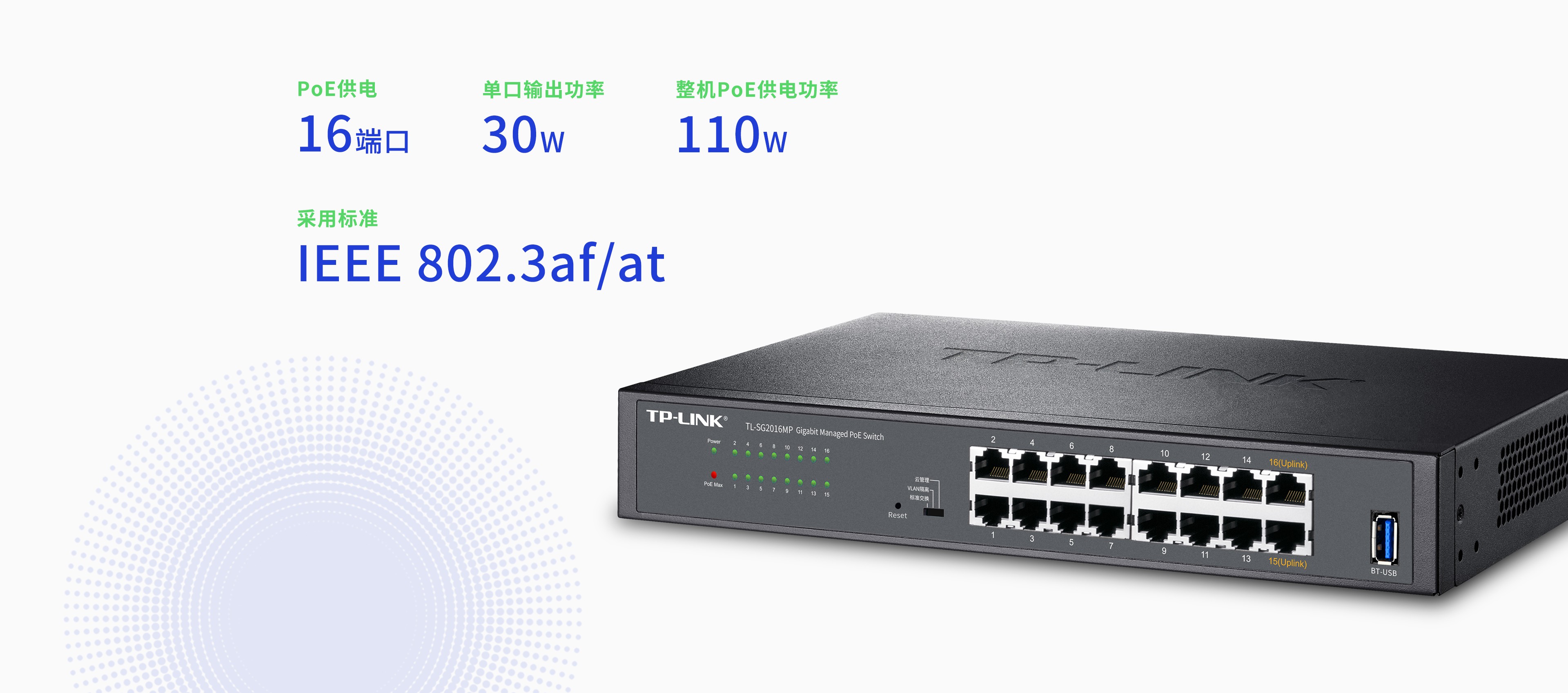 • 整机最大PoE供电功率为110W,单端口最大PoE供电功率为30W