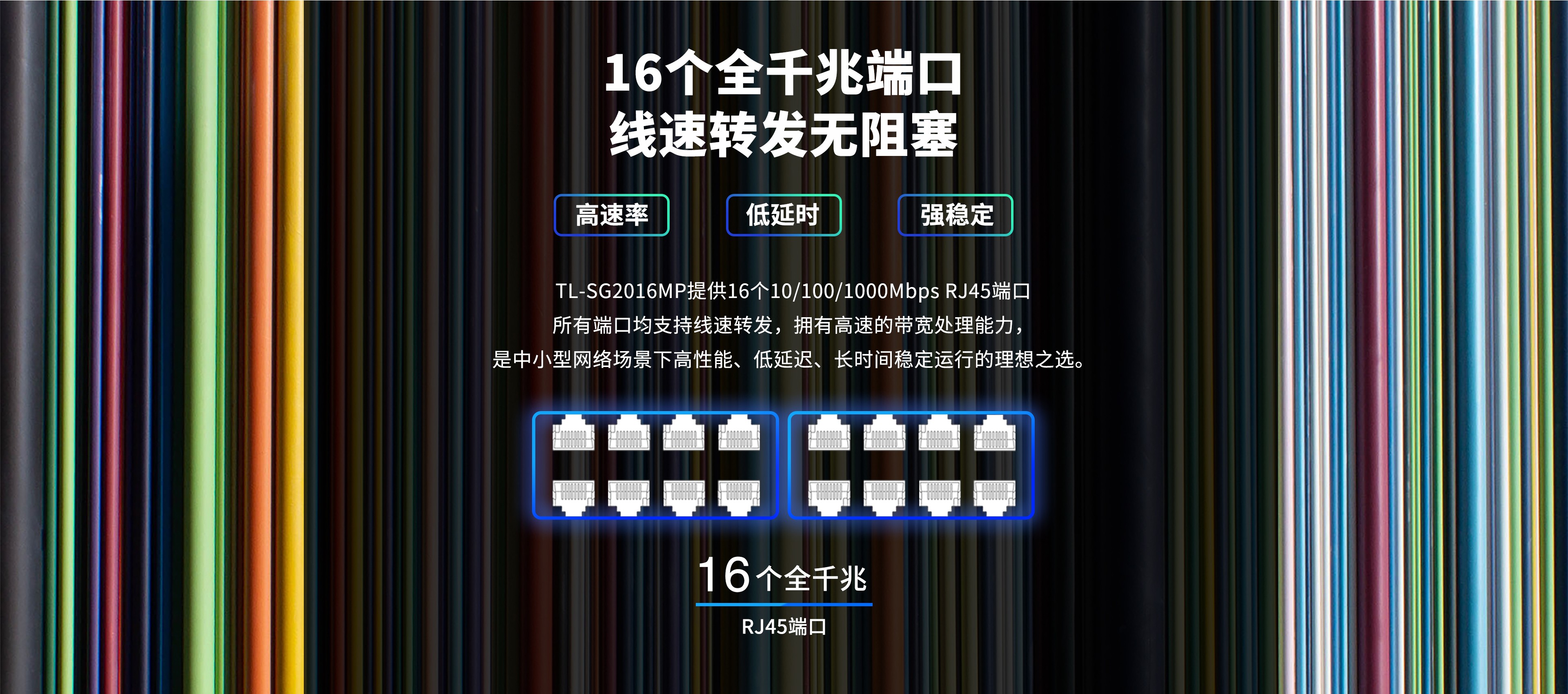 • 16个10/100/1000Base-T RJ45端口(支持标准PoE+供电)