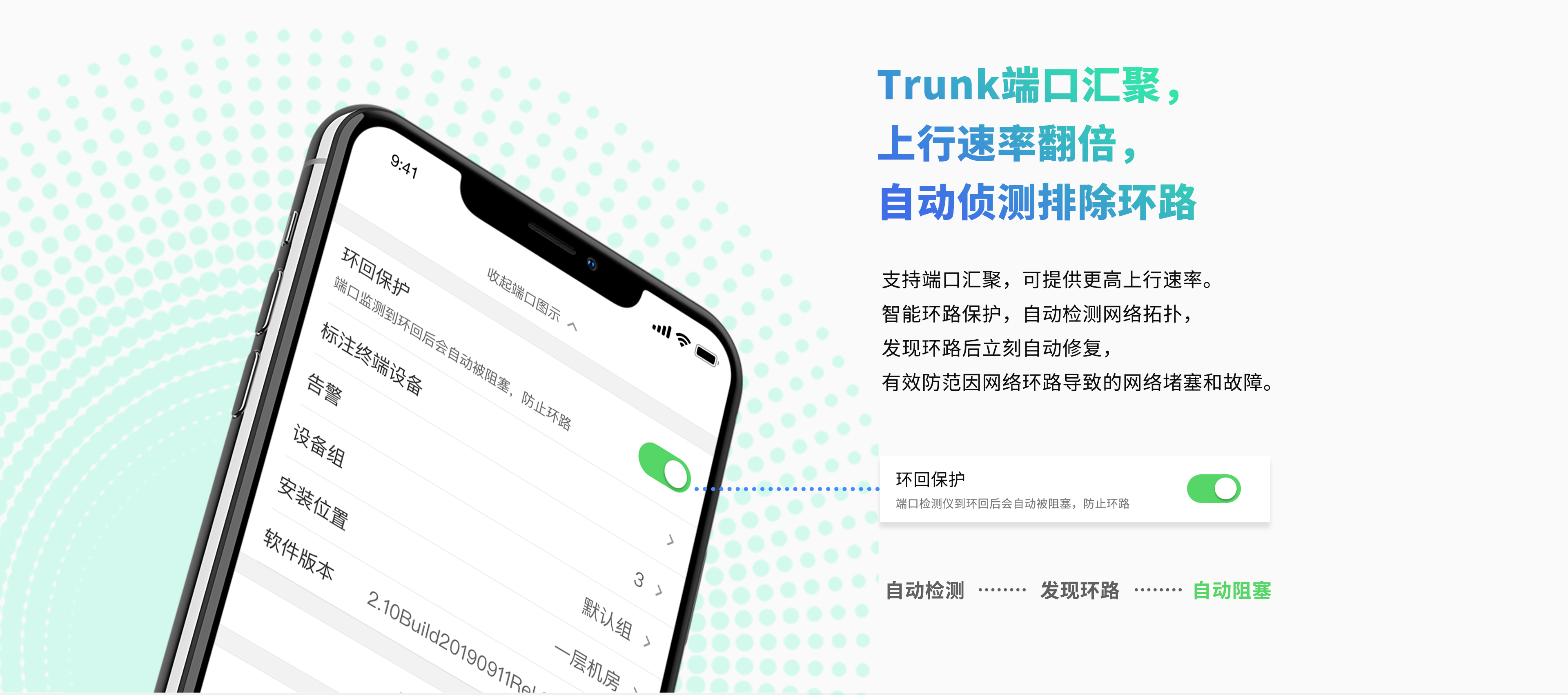 • 支持端口汇聚、端口流量统计、端口监控、线缆检测、环回保护