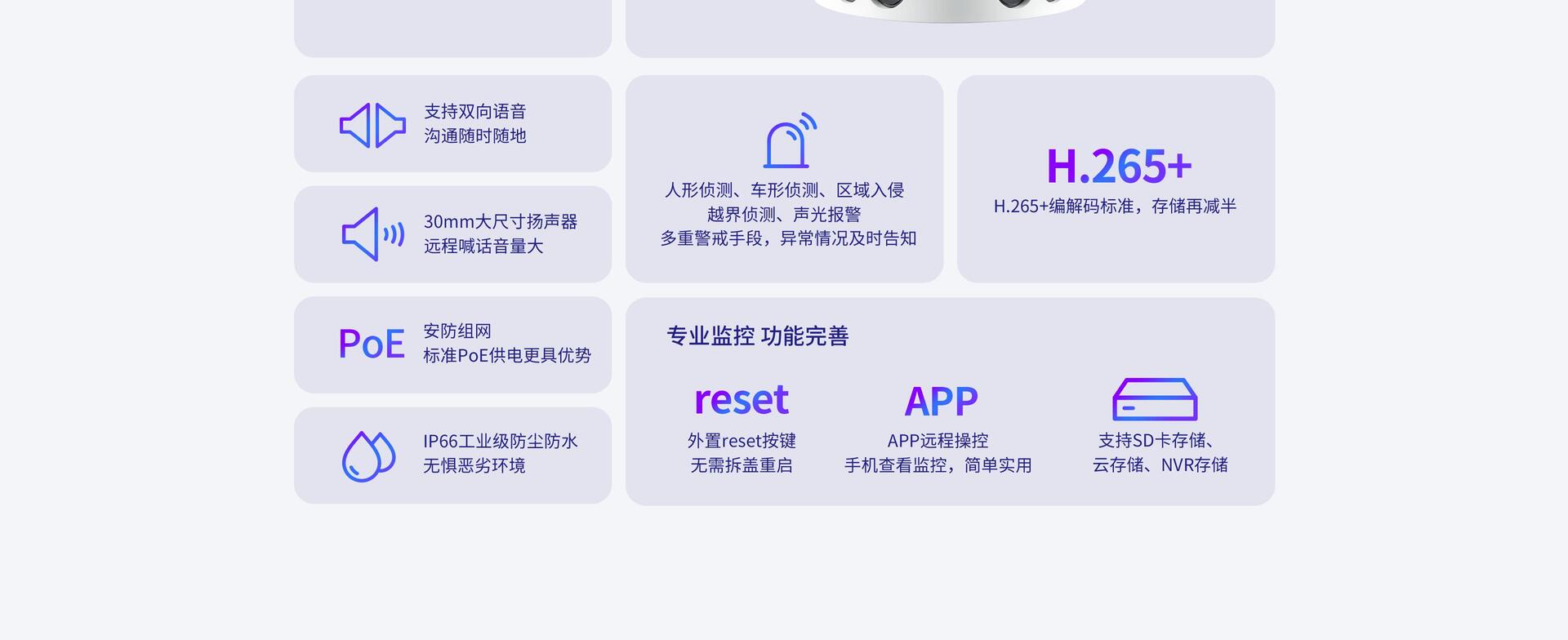 • 支持H.265+视频编码标准,存储再减半,体验再提升