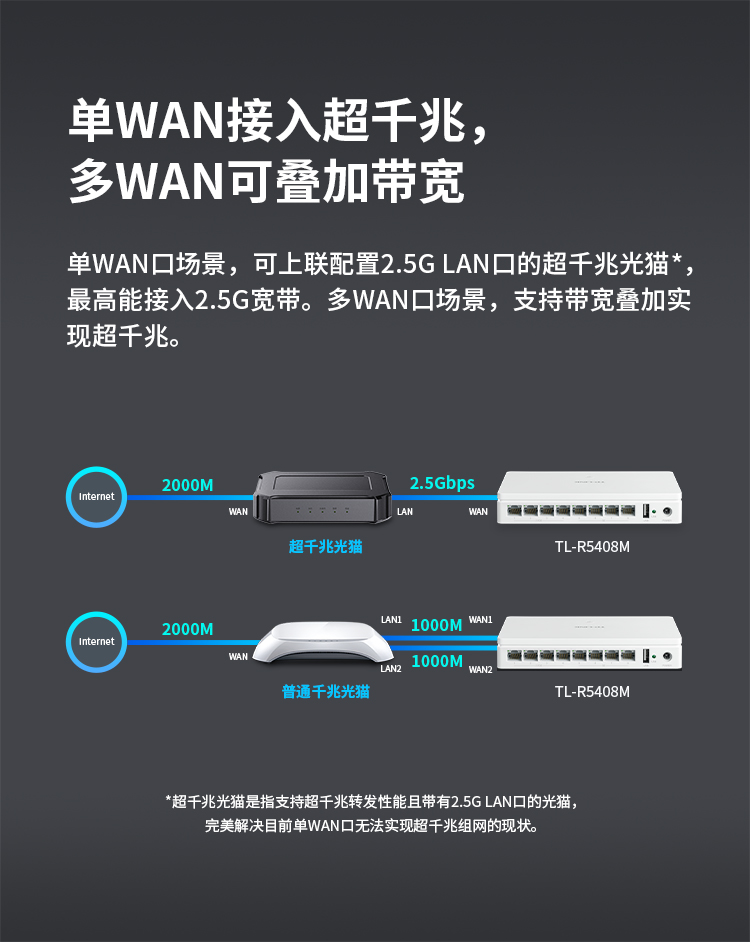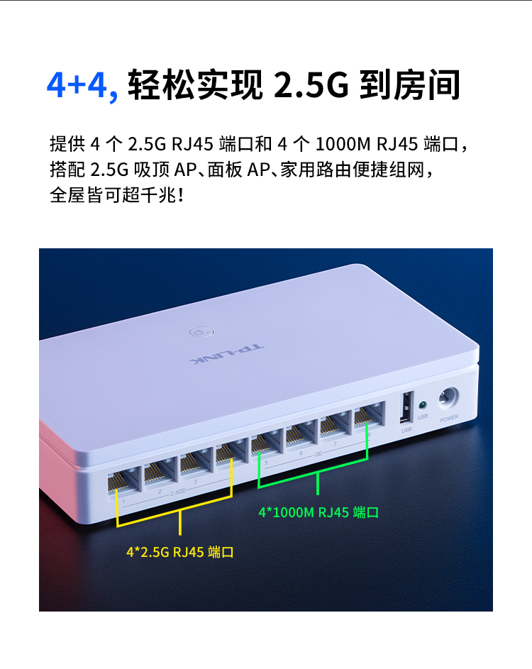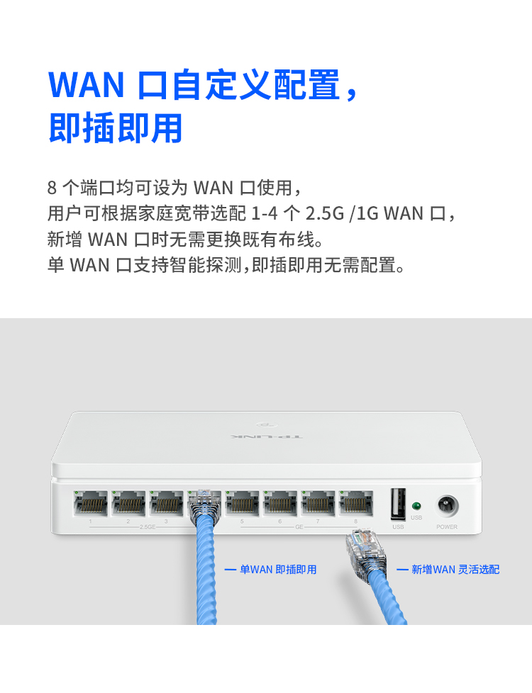• 4个2.5G网口和4个千兆网口,均可设为WAN口使用,最多支持设置4个口为WAN口