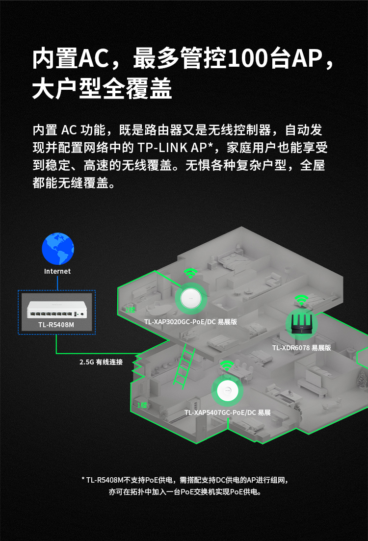 • 内置无线控制器,可统一管理TP-LINK AP产品