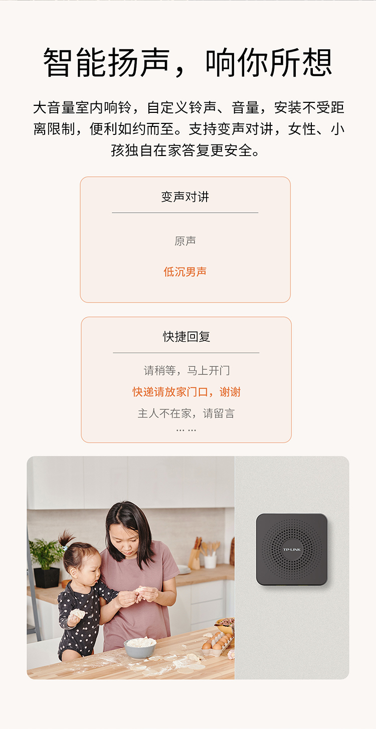 • 大分贝室内扬声器,多种铃声可选