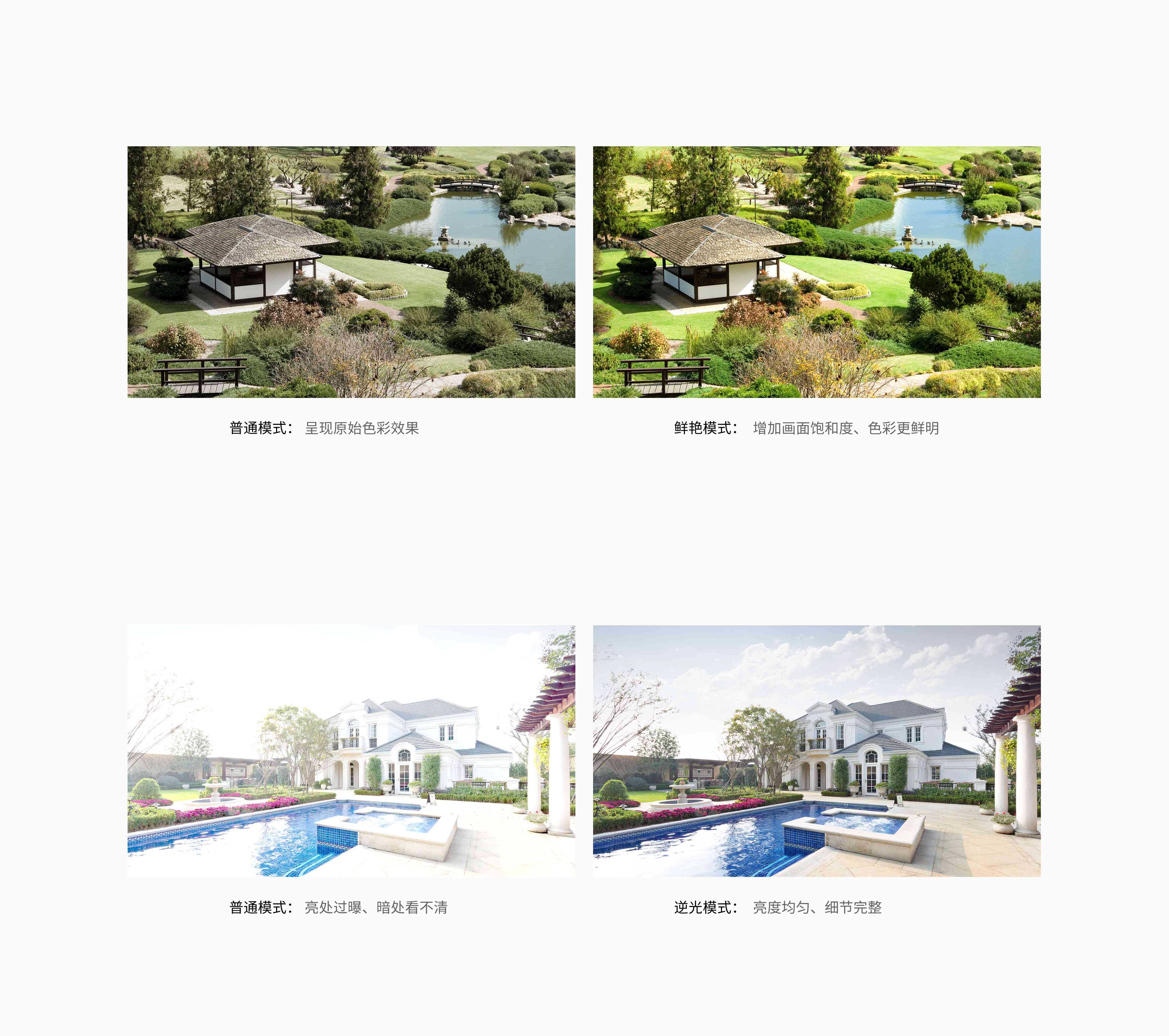 支持标准、鲜艳、车牌、逆光四种监控场景模式,灵活应对各类应用场景