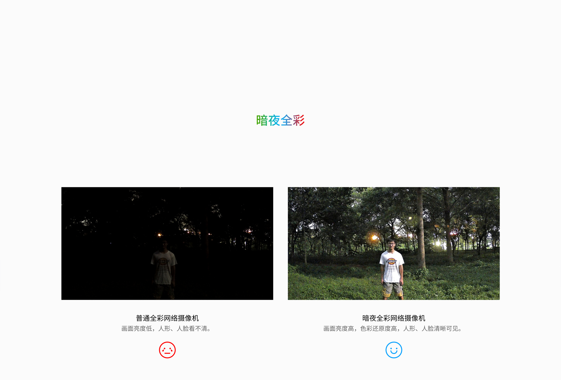 采用1/2.8英寸大靶面高感光Sensor,F1.0大光圈镜头,极低照度仍然保持全彩