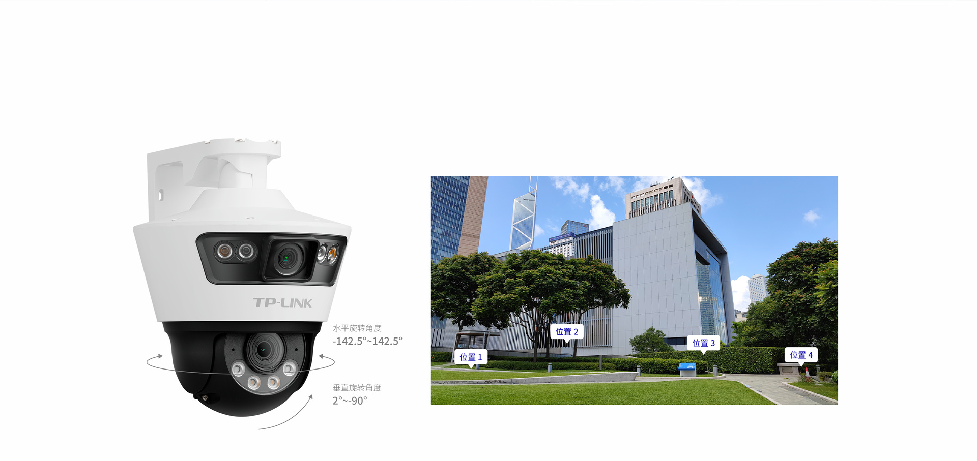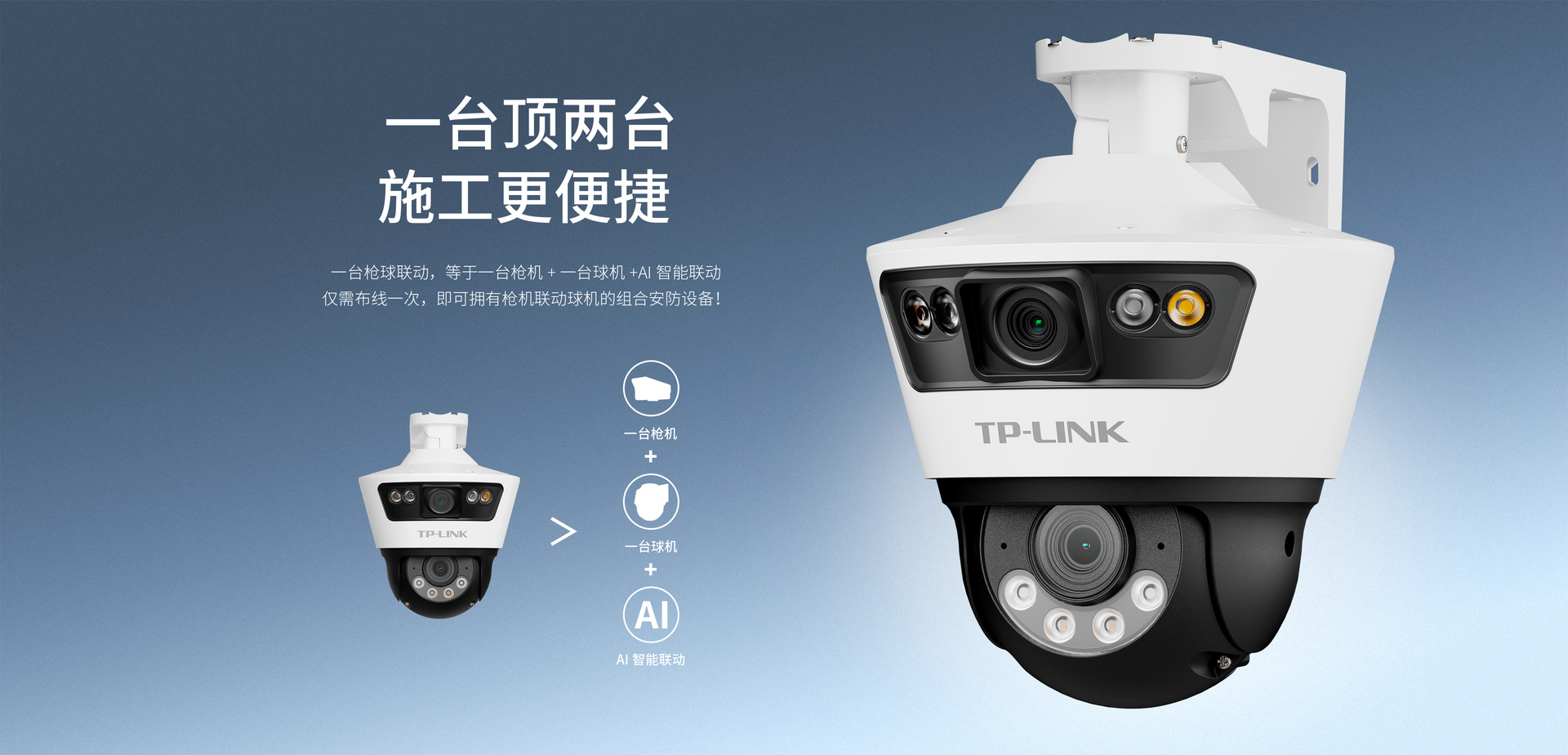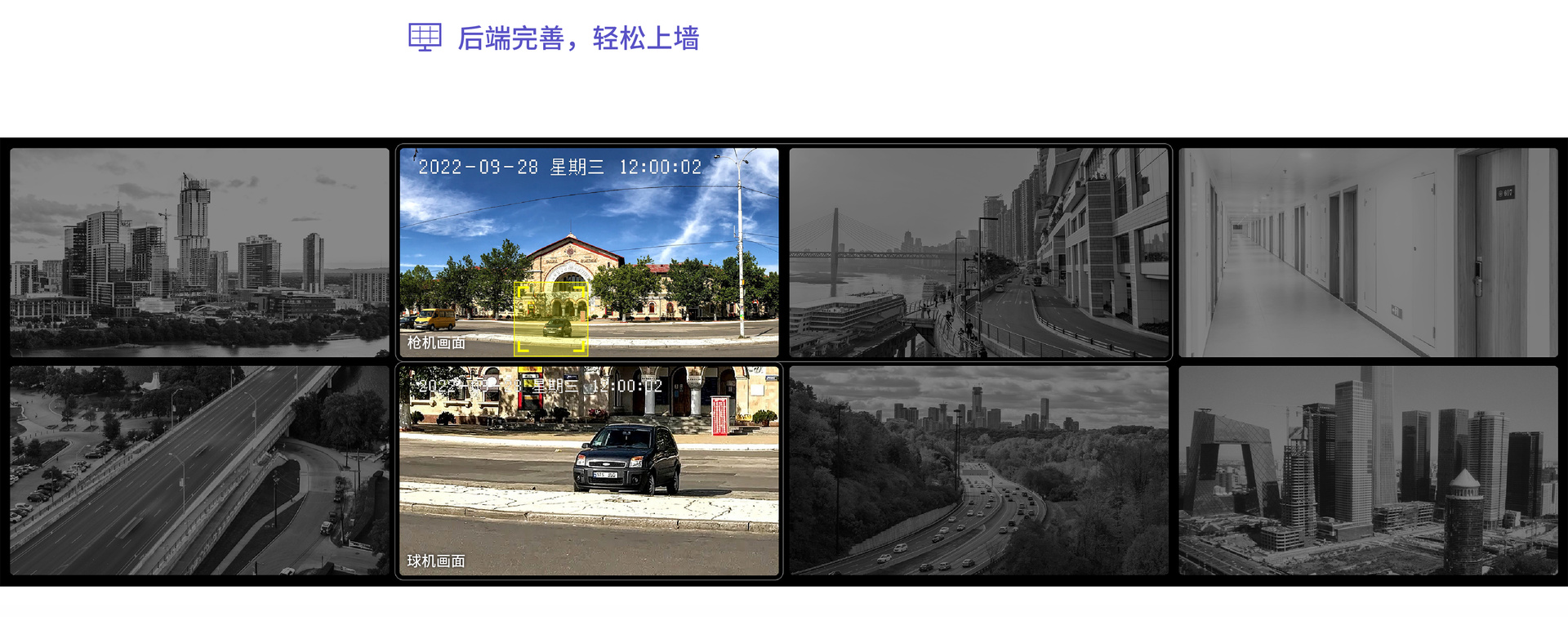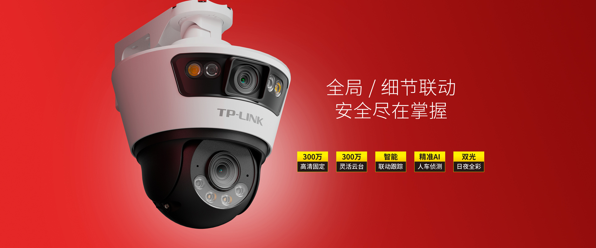 枪球联动,300万像素枪机+300万像素球机,兼顾全景画面与特写画面