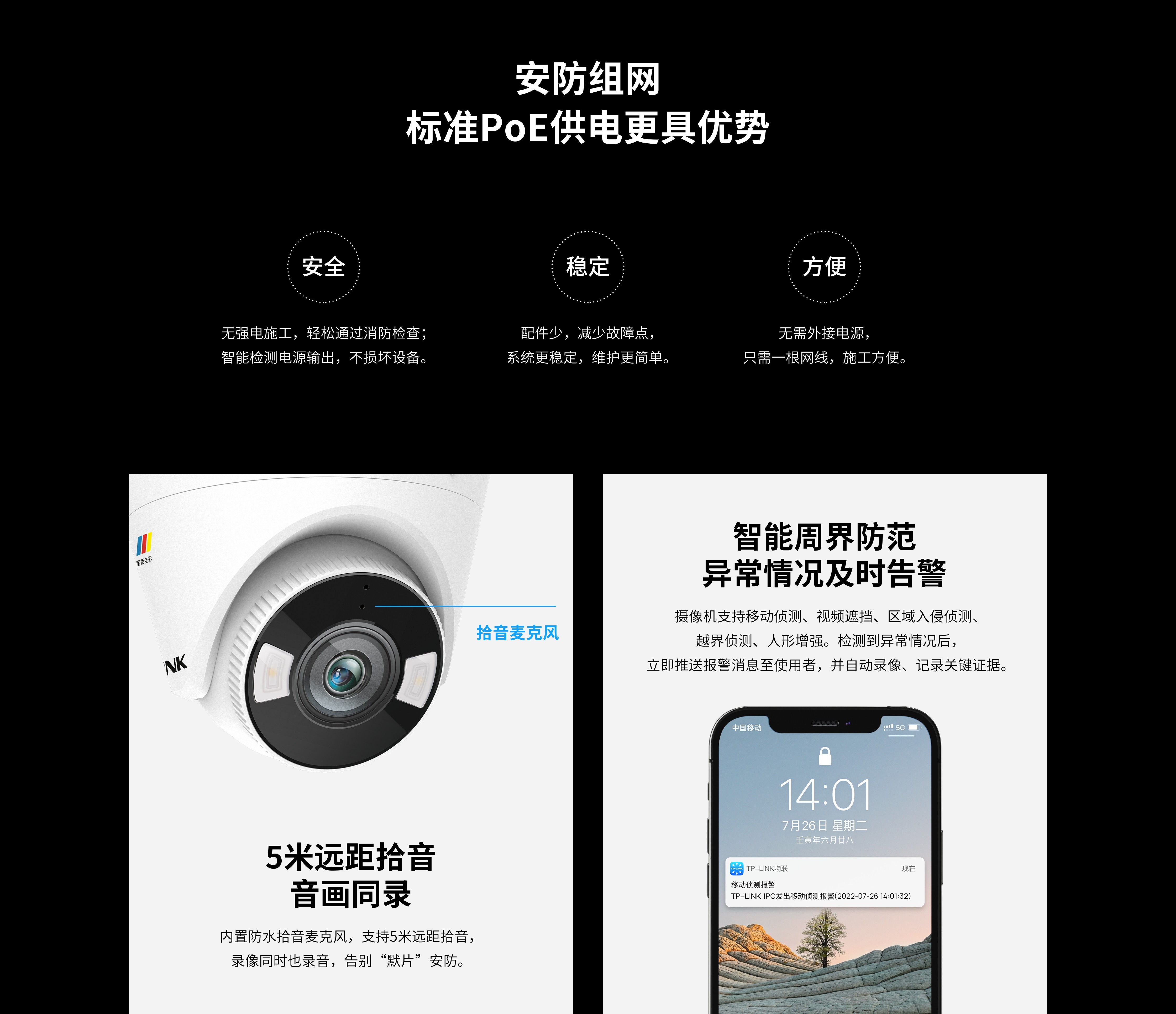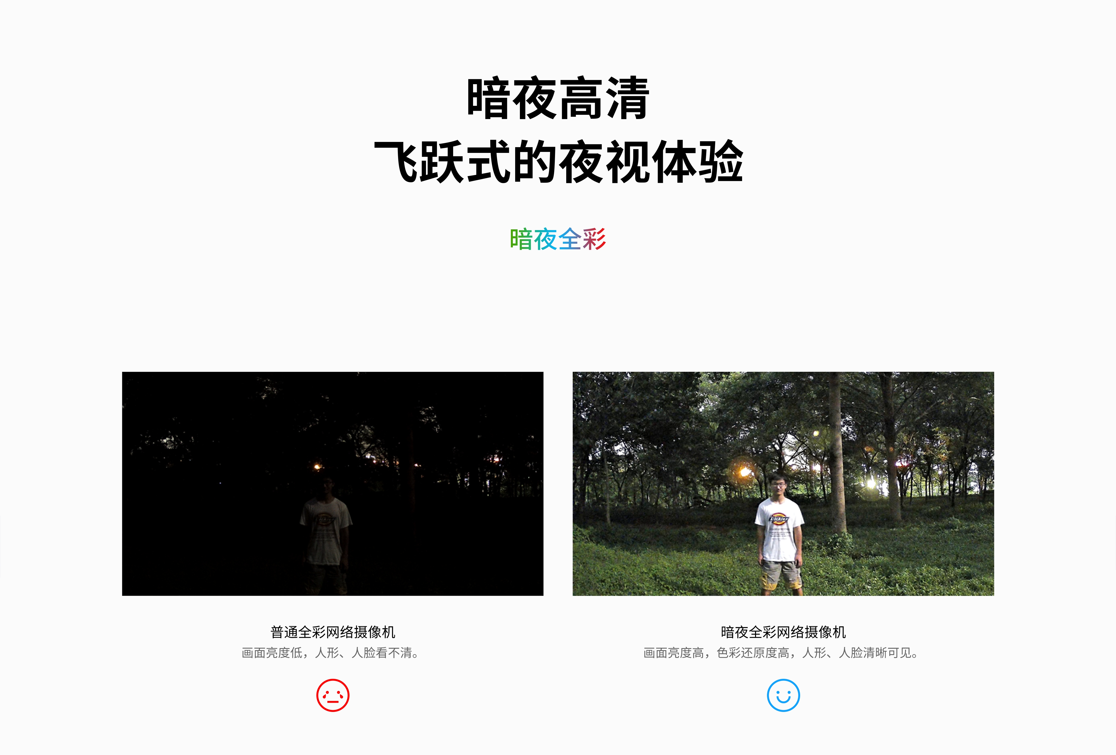 采用1/1.8英寸大靶面高感光Sensor,F1.0大光圈镜头,极低照度仍然保持全彩