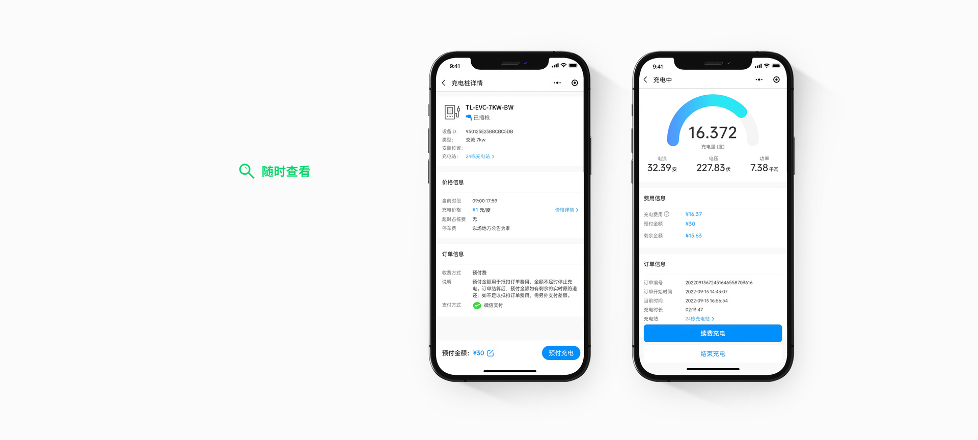 支持微信小程序启停充电、查看充电数据、支付充电费用
