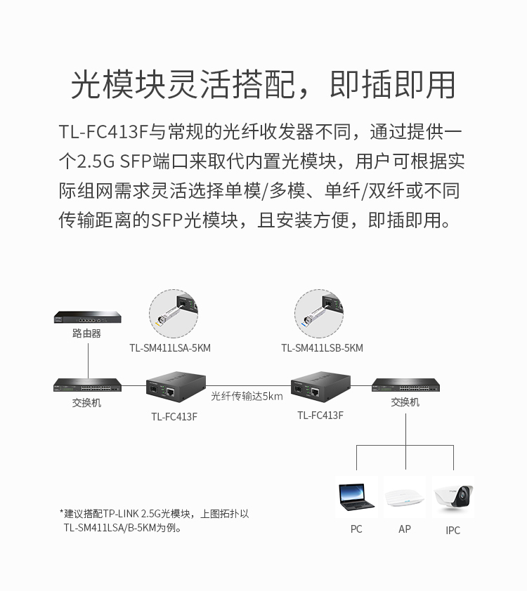可搭配2.5G单模/多模、单纤/双纤SFP光模块