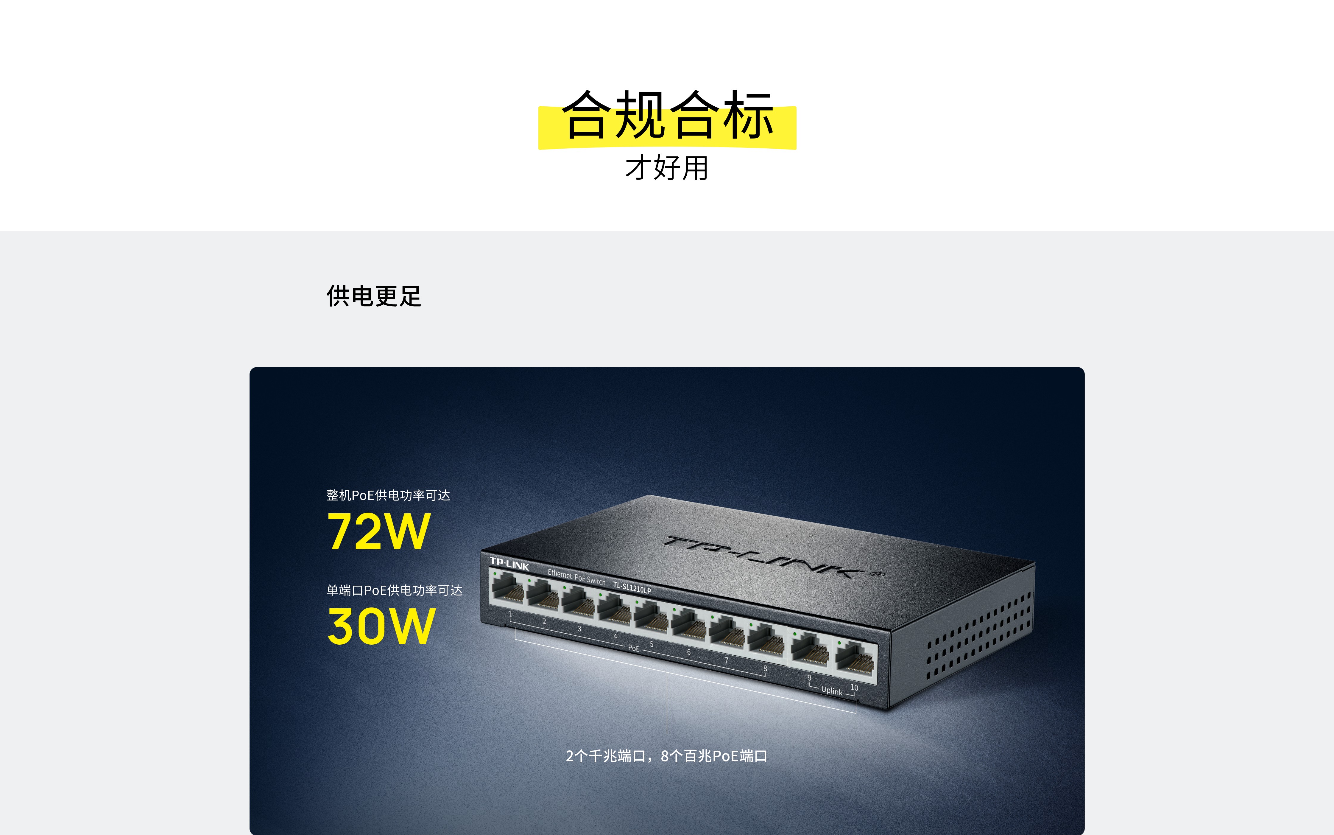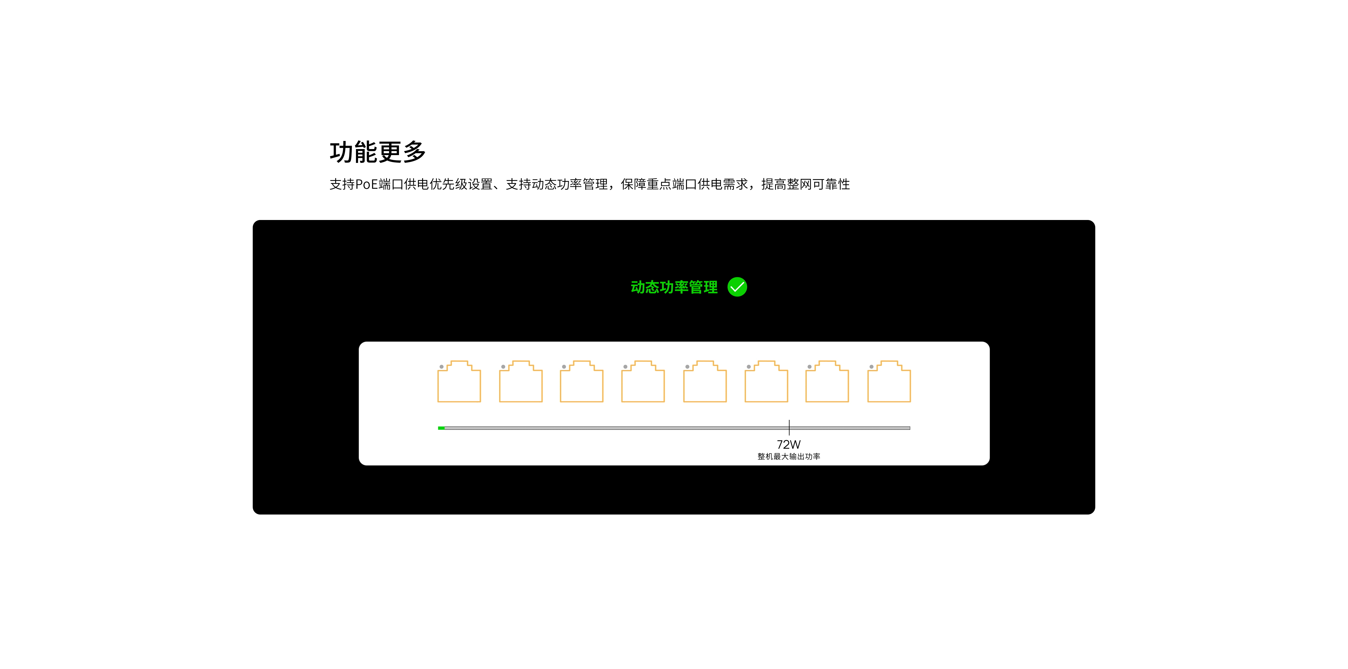 整机PoE供电功率达72W,单端口PoE供电功率达30W