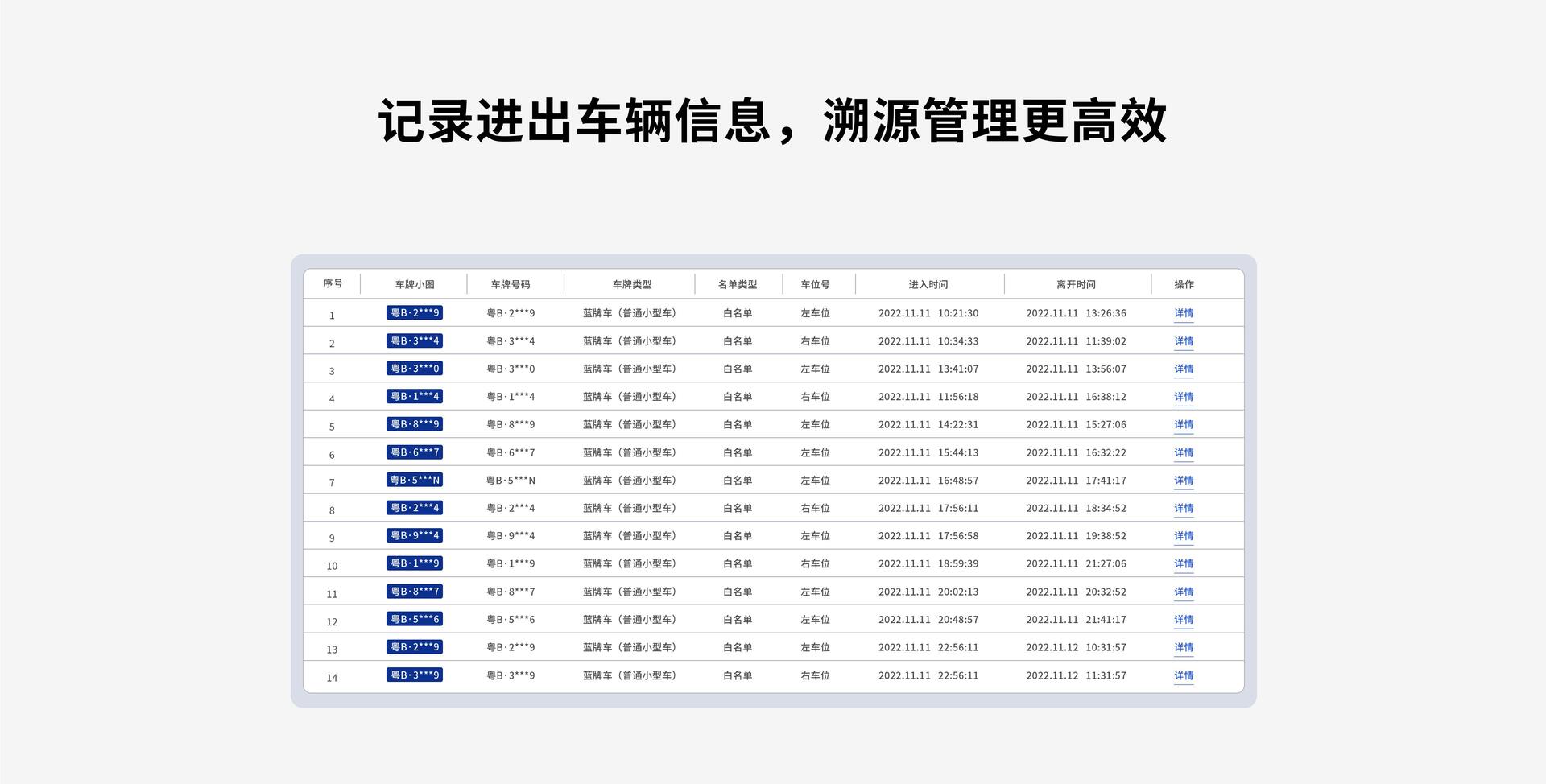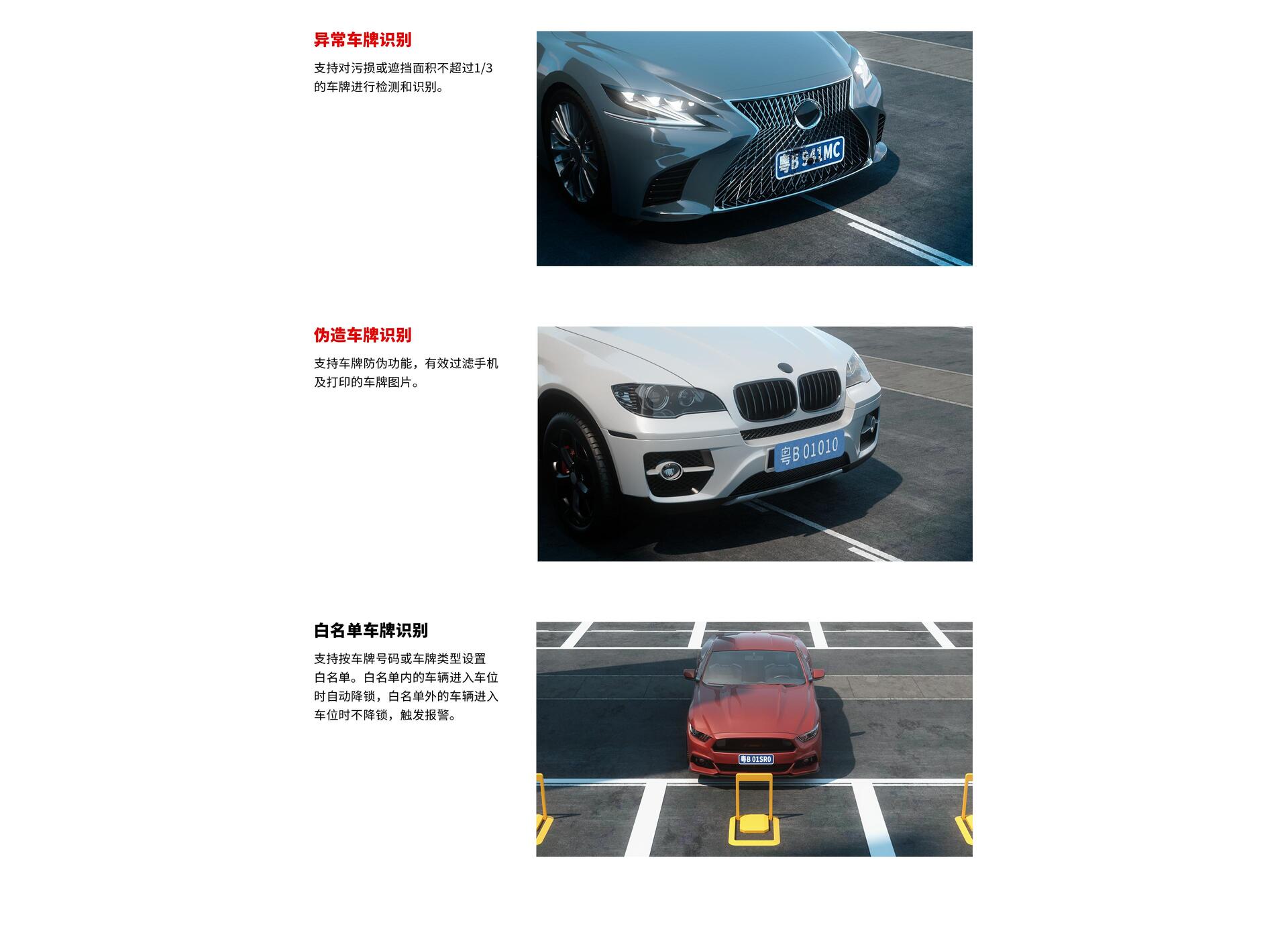 支持按车牌号码、车牌类型设置白名单,白名单车辆进入车位自动降锁
