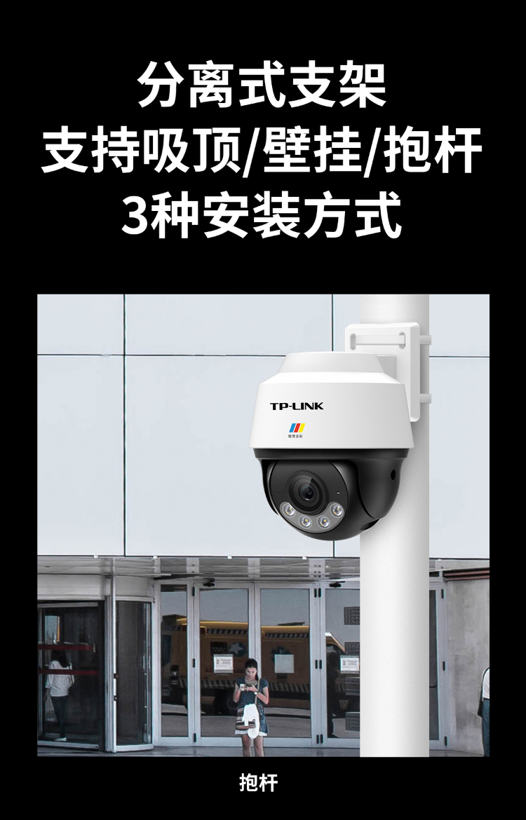 自带可拆卸式支架,可支持抱杆/吸顶/壁挂安装