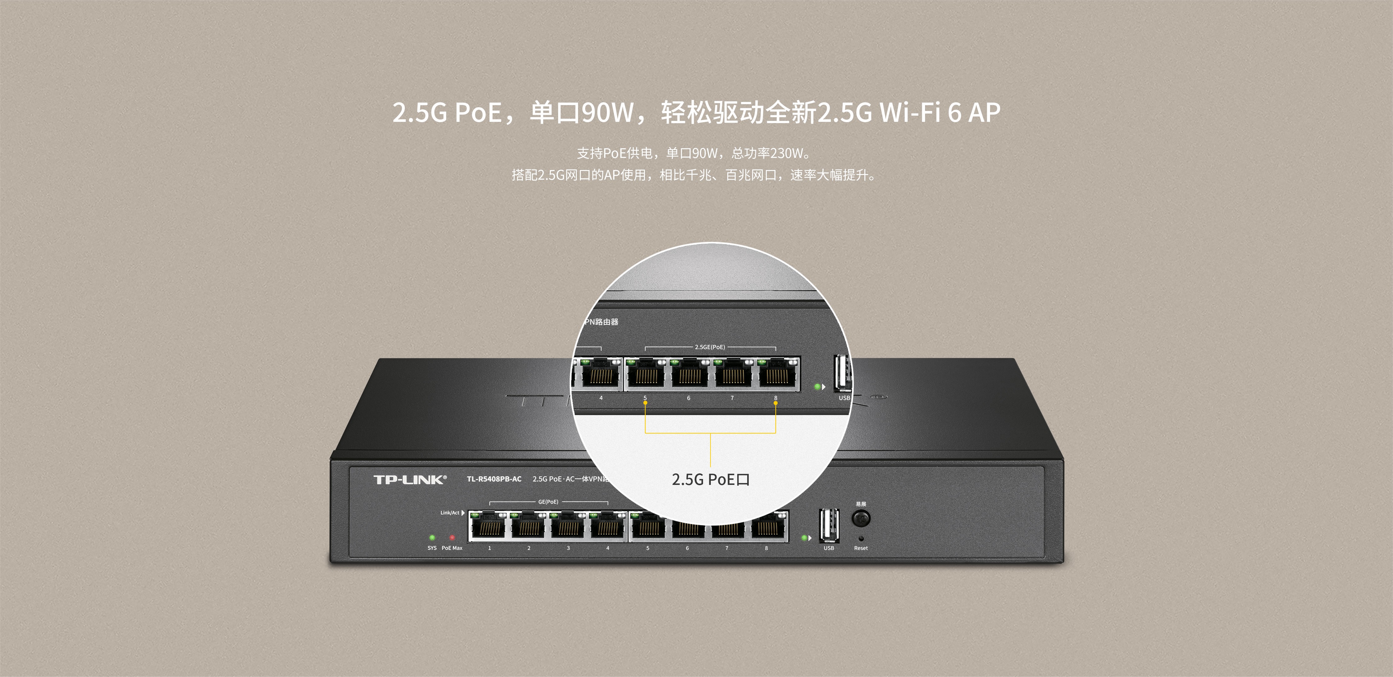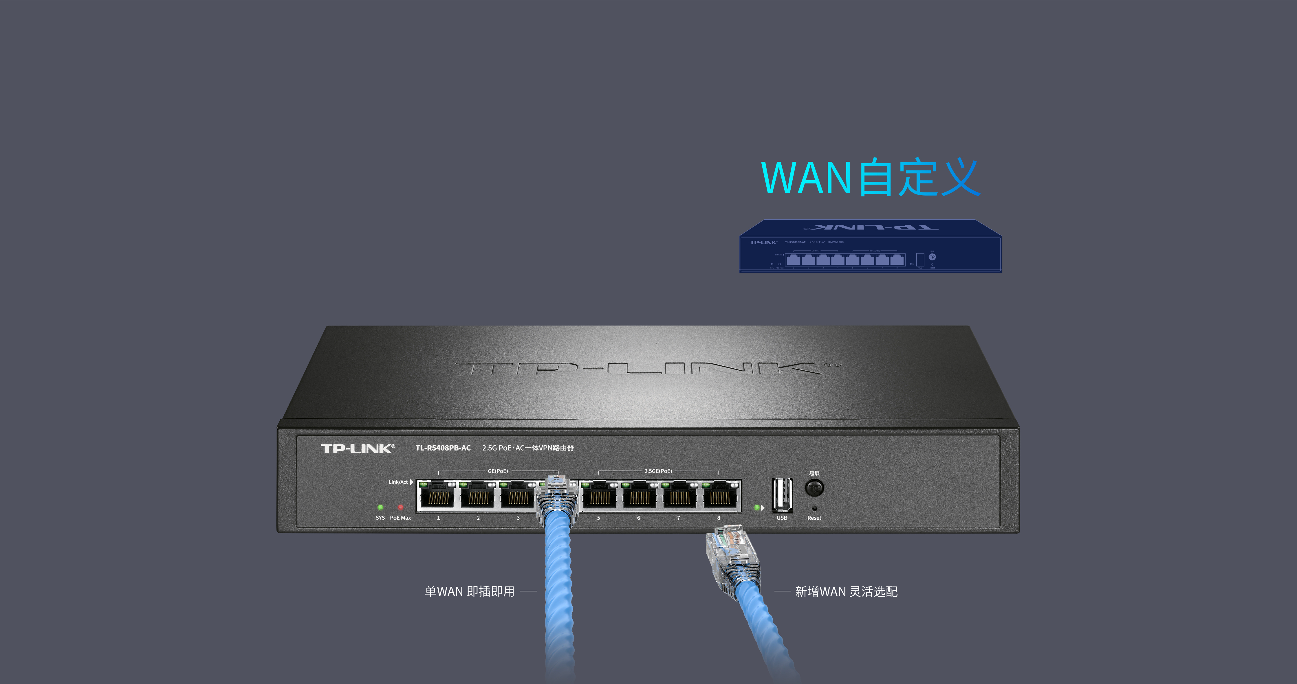 4个2.5G网口和4个千兆网口,均可设为WAN口使用,最多支持4个口为WAN口