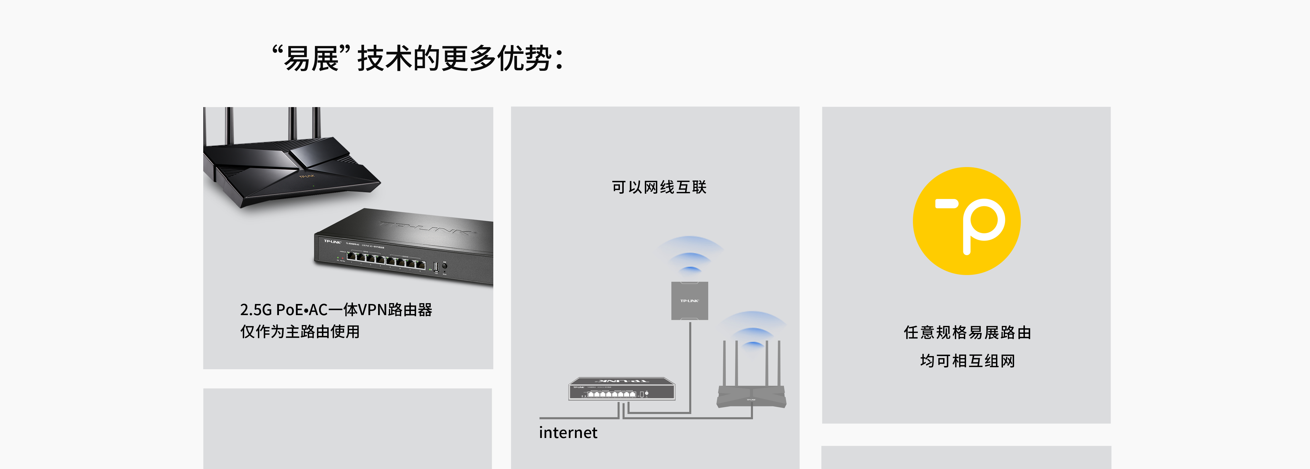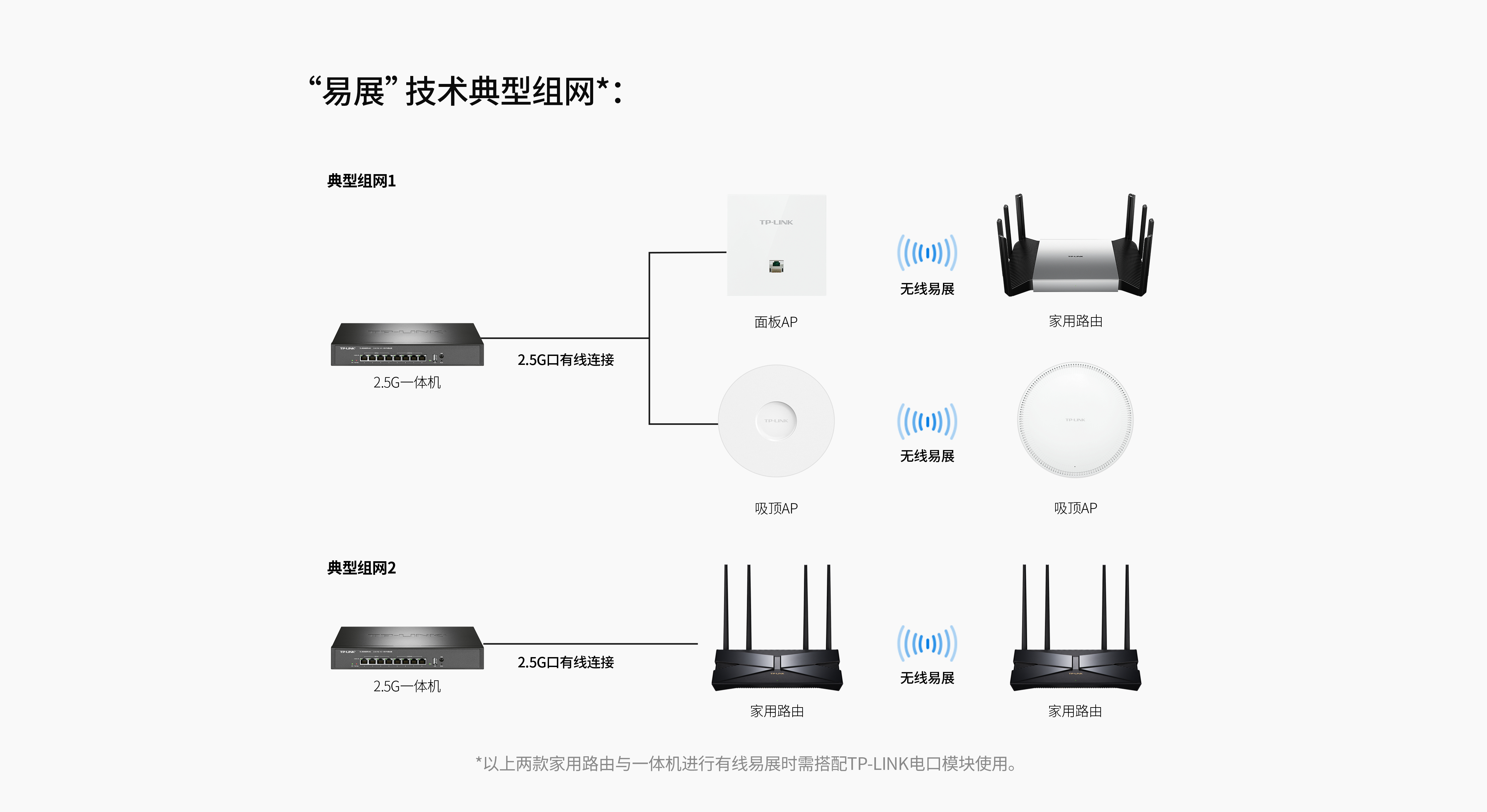 支持易展组网,可与易展系列企业无线路由、AP、家用路由便捷组网
