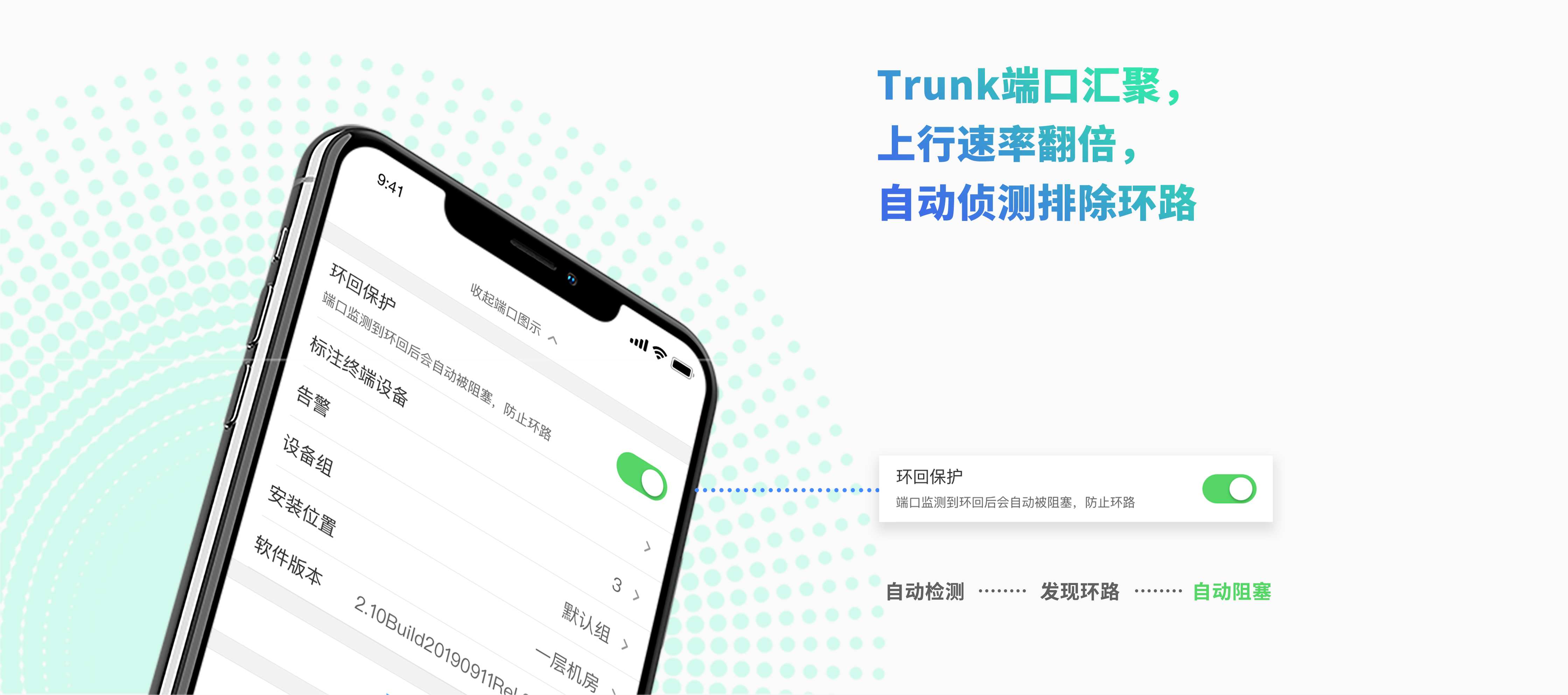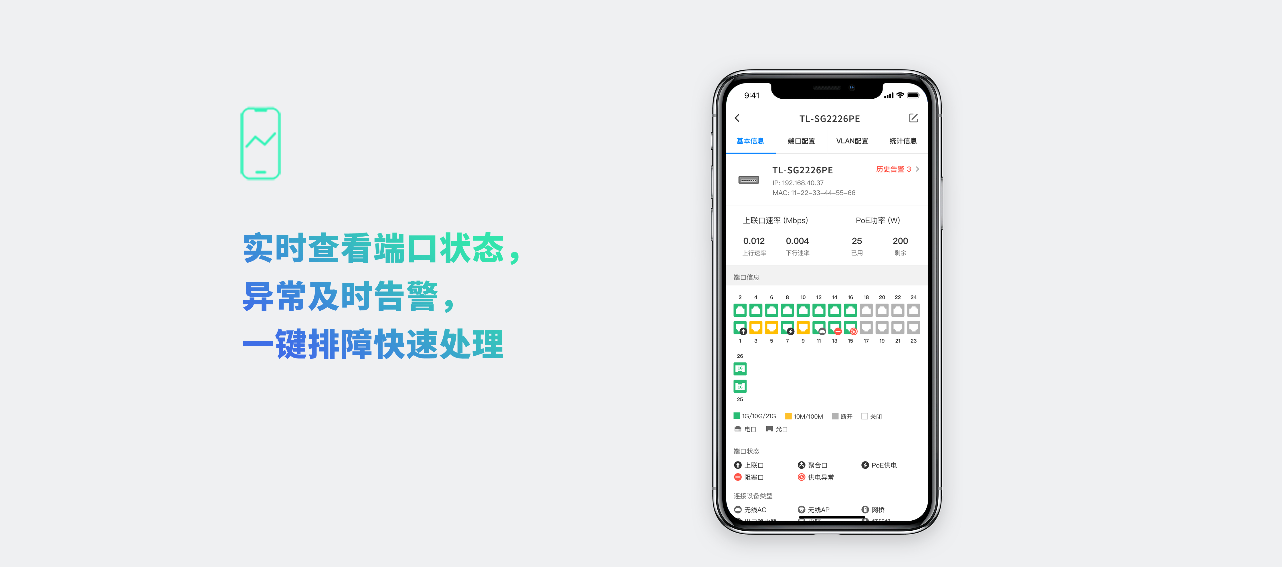 支持端口汇聚、端口流量统计、端口监控、线缆检测、环回保护