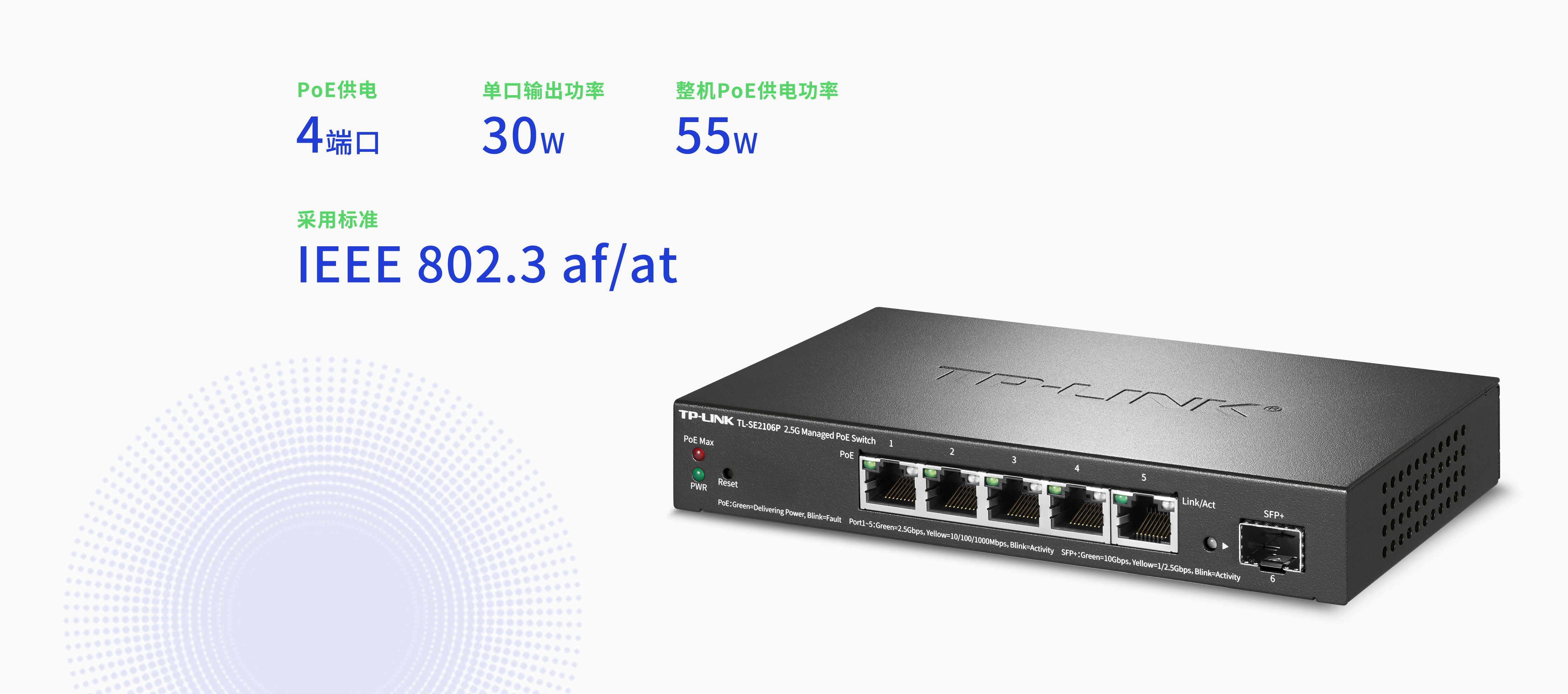 符合IEEE 802.3af/at PoE供电标准,端口支持供电优先级