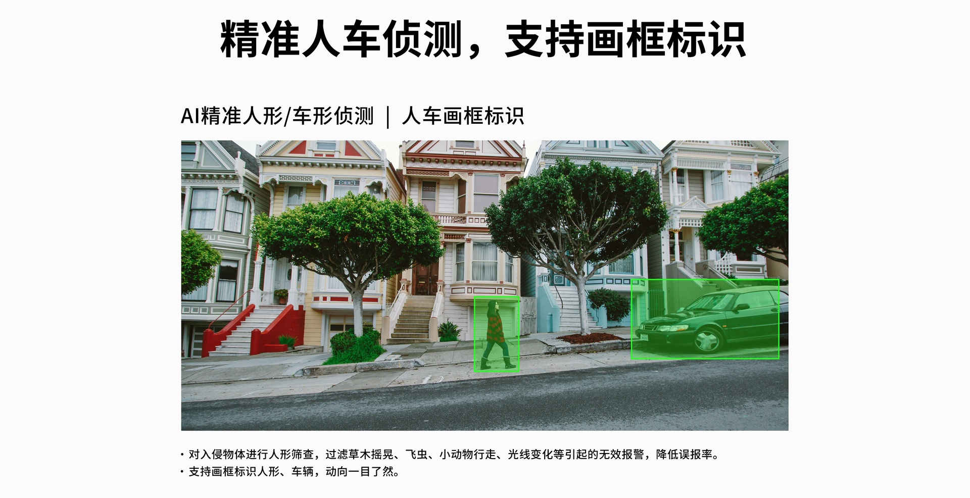 支持AI人形侦测、车辆侦测,支持人形画框和车辆画框