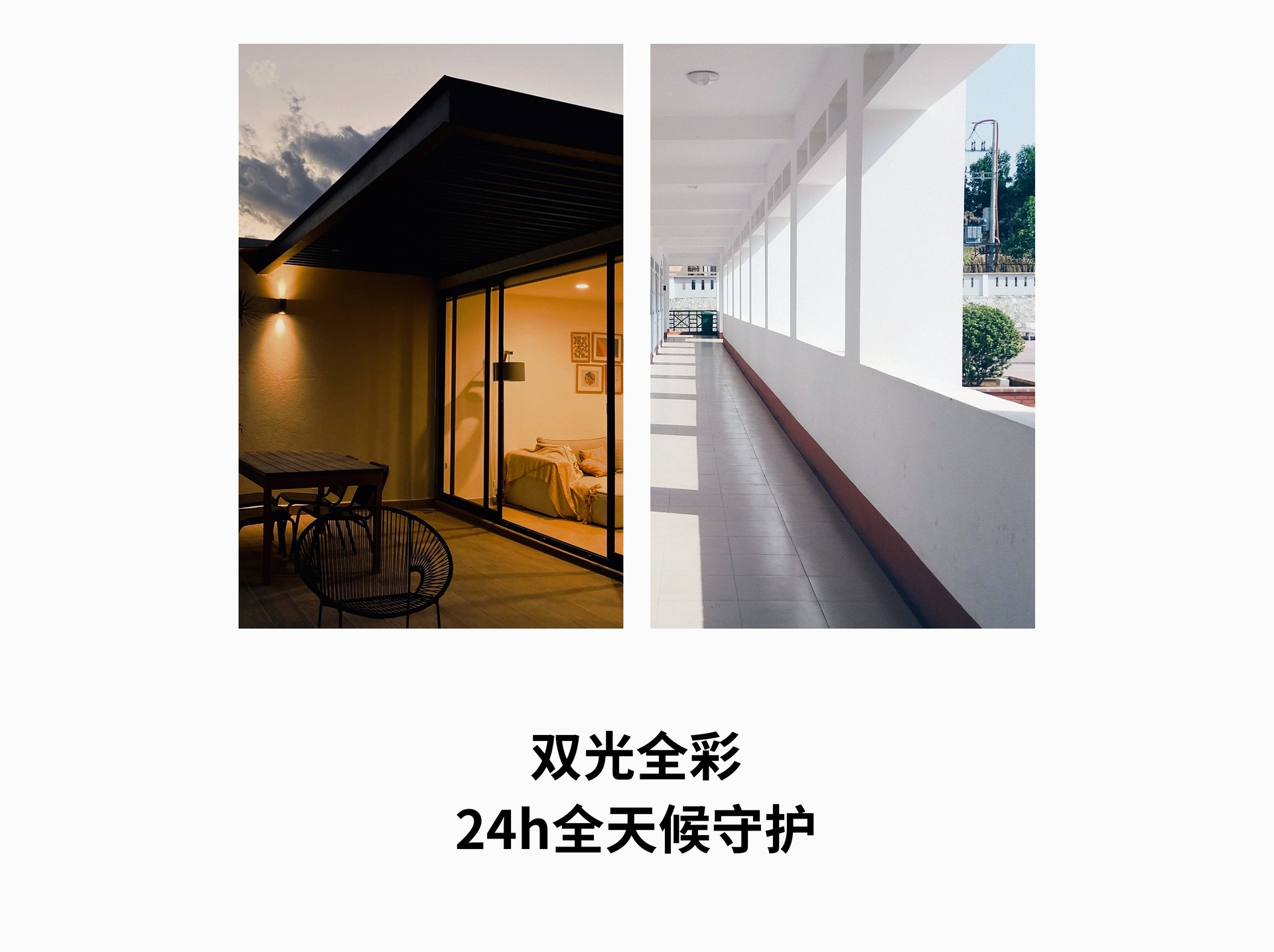 外置2颗暖光灯、2颗红外灯,支持全彩/红外/移动侦测全彩