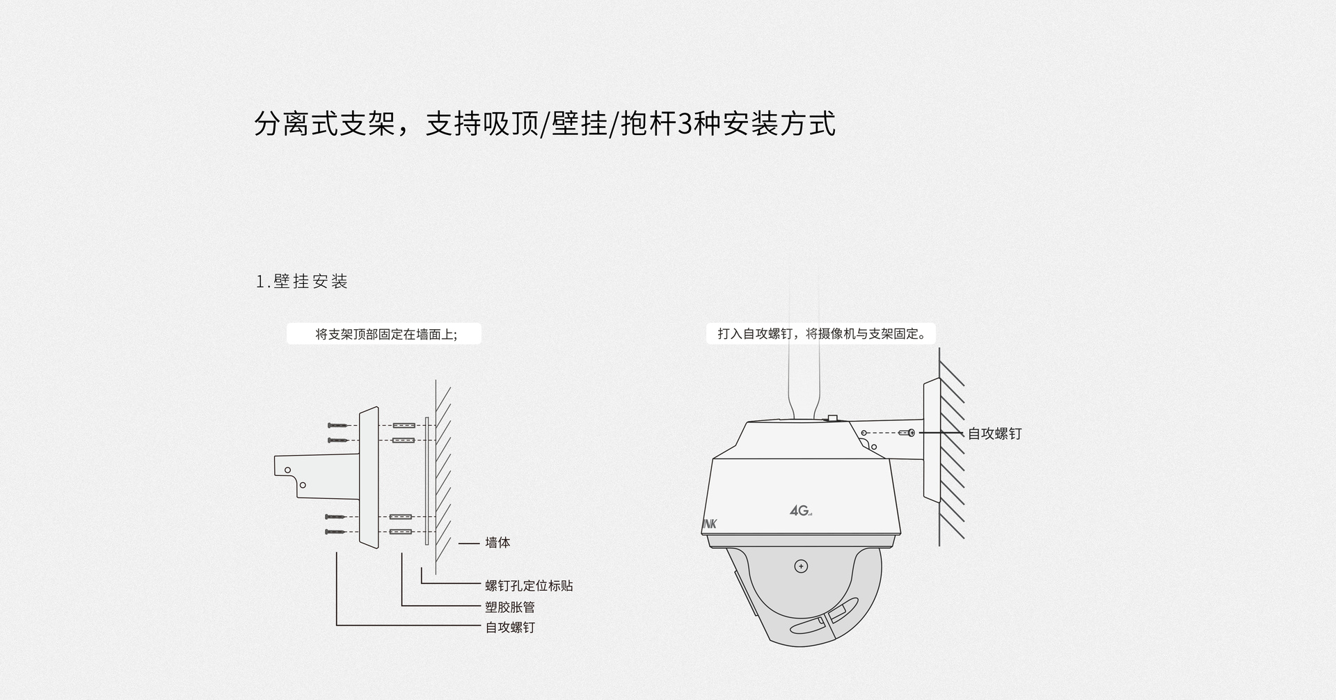 创新分离式支架,支持抱杆/吸顶/壁挂安装