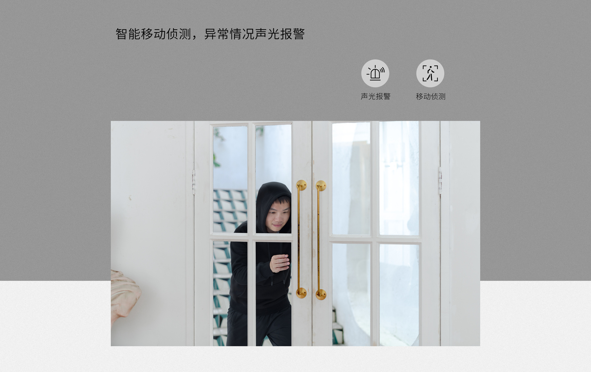 支持声光报警,高功率喇叭搭配白光灯实现智能警戒