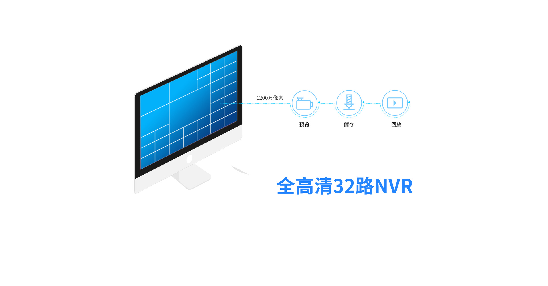 兼容更广泛,支持100~1200w像素摄像机接入,支持32路同步监控;