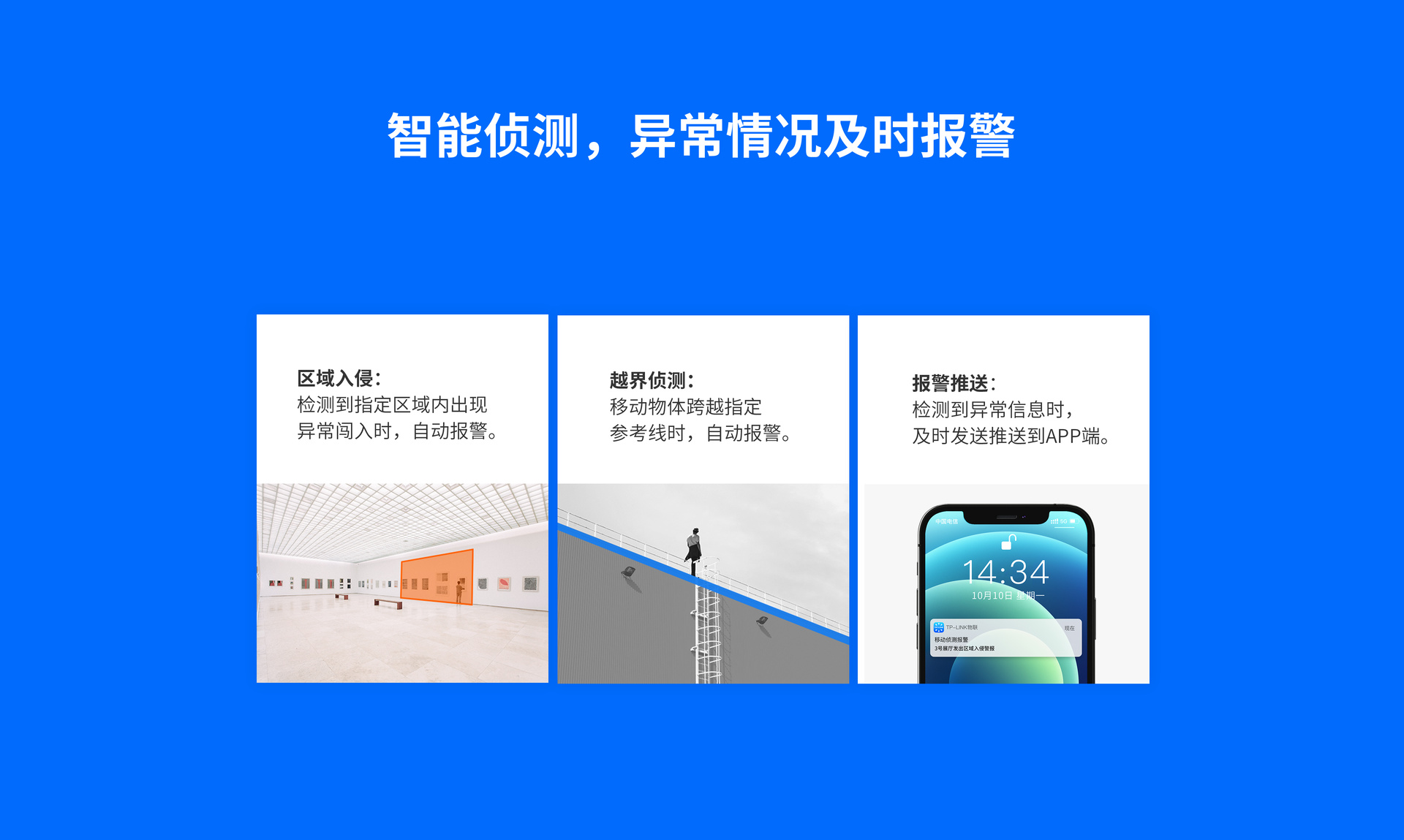 安防更省心,多种智能事件实时检测,搭配摄像机实现声光报警、联动录像;