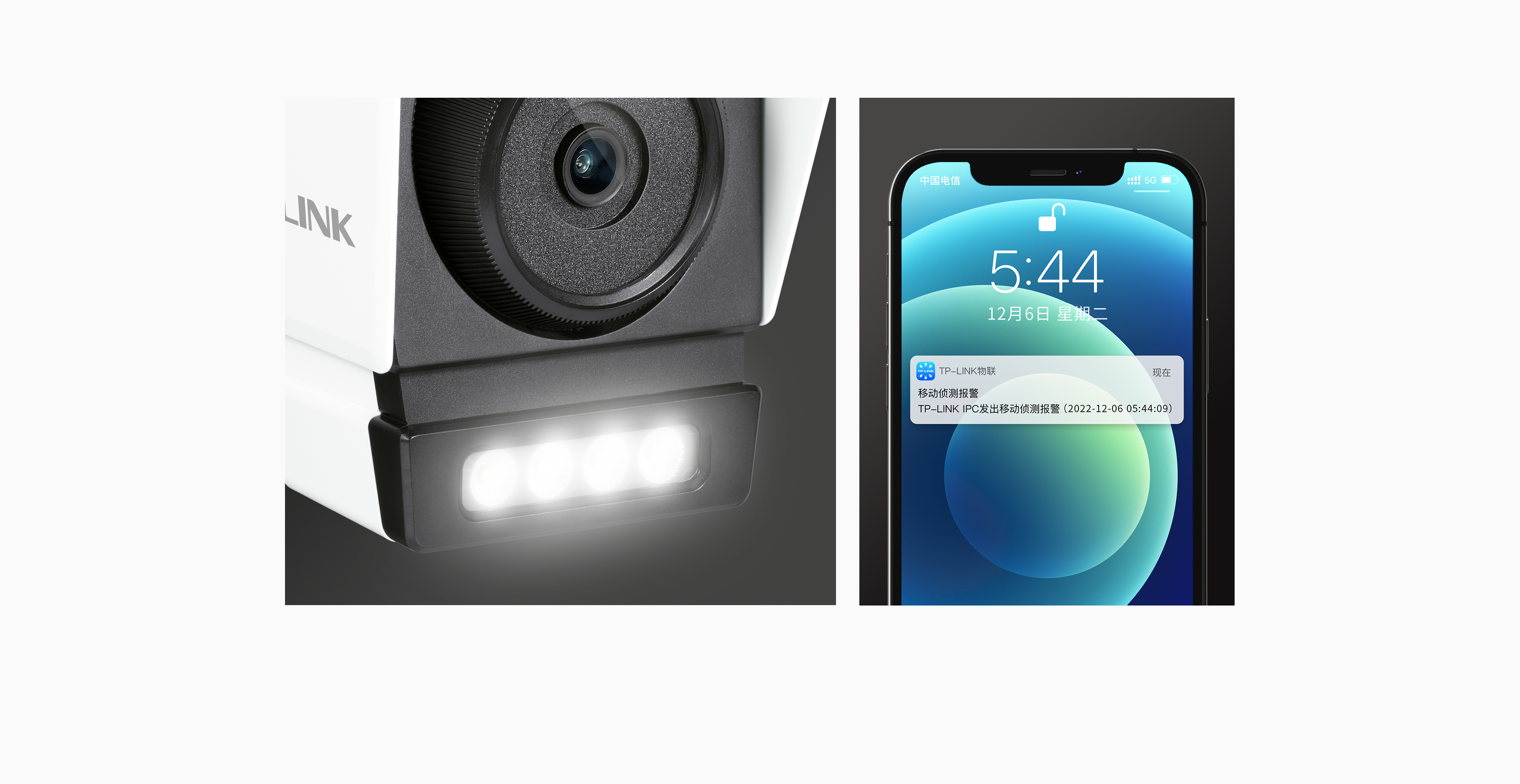 内置4颗白光/红外双色灯,支持全彩/红外/移动侦测全彩
