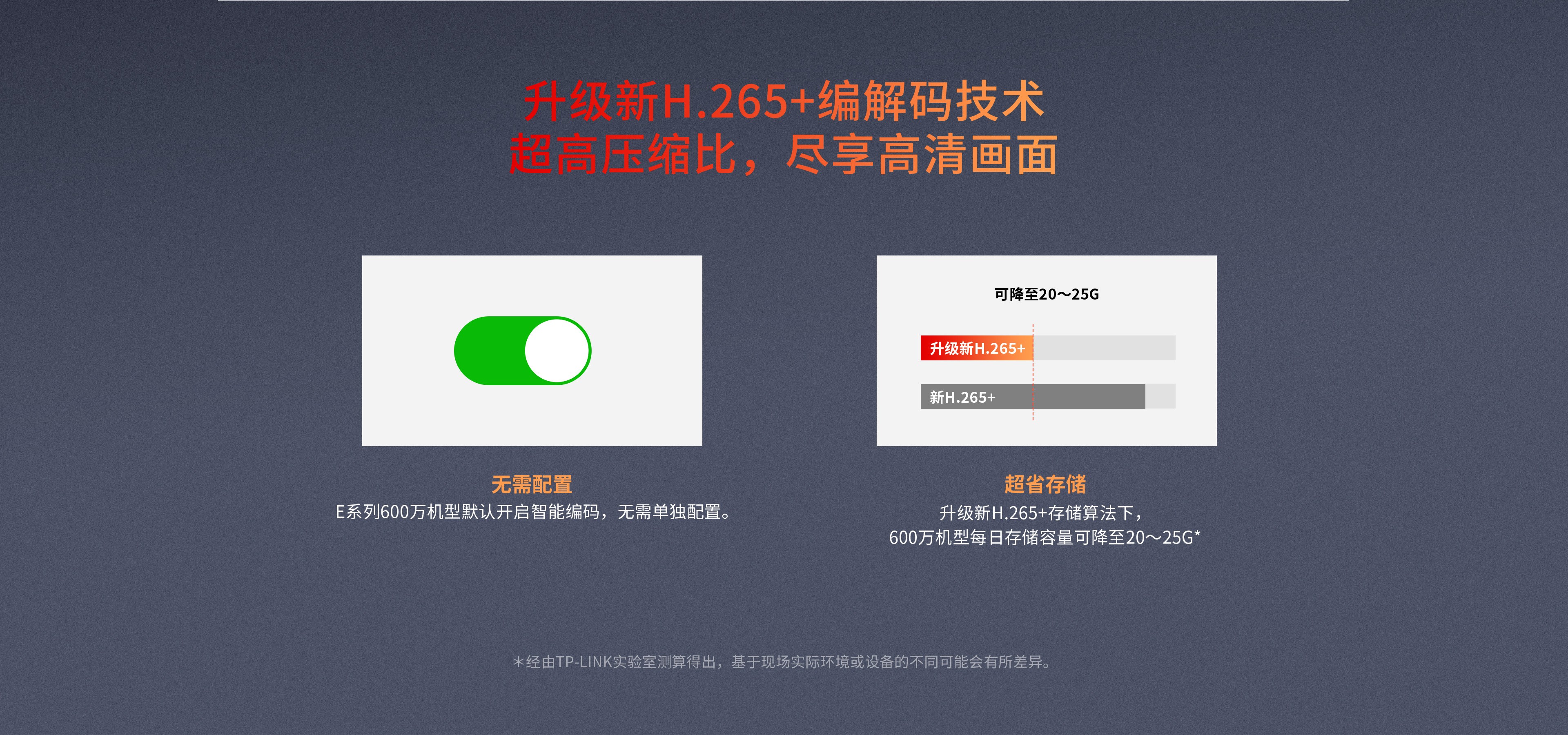 支持TP-SRC`码控算法(新H.265+),在智能编码基础上可再节省30%存储空间