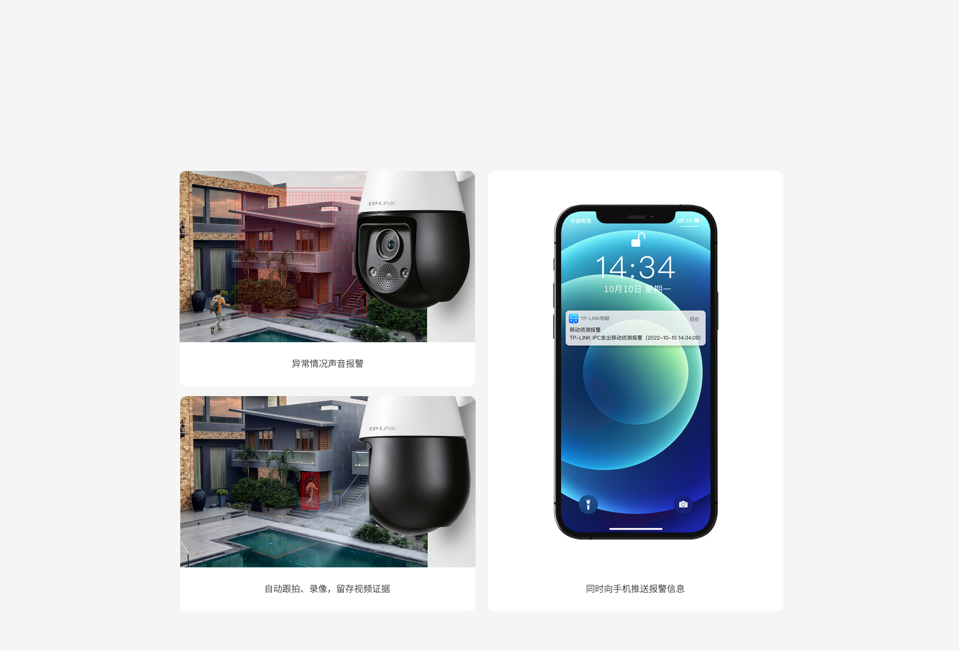 智能移动侦测,异常情况及时推送报警信息